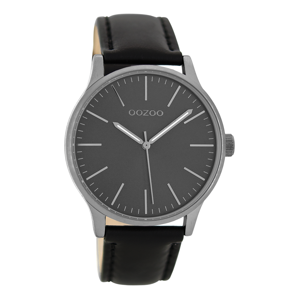 Titanium OOZOO watch with black leather strap - C8544