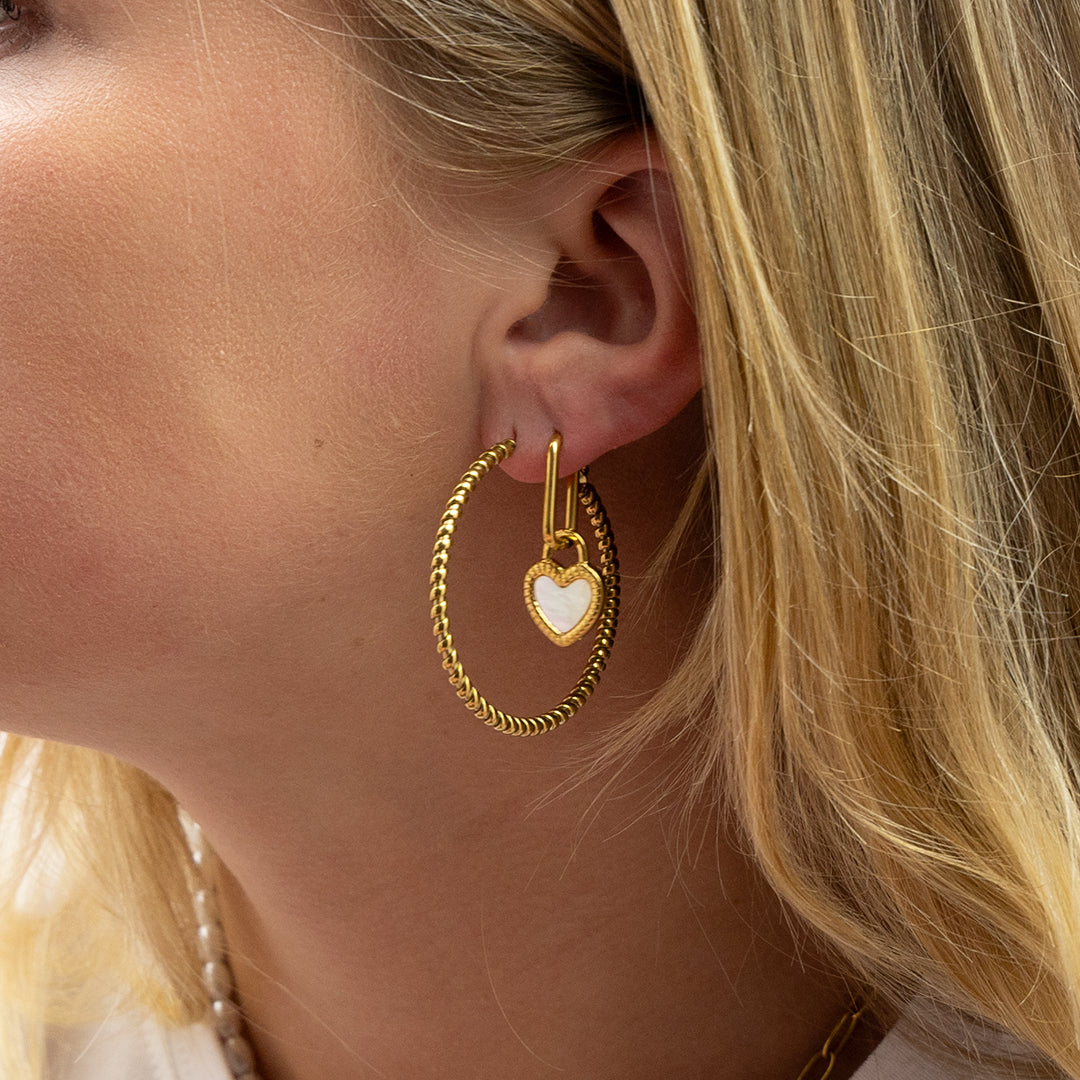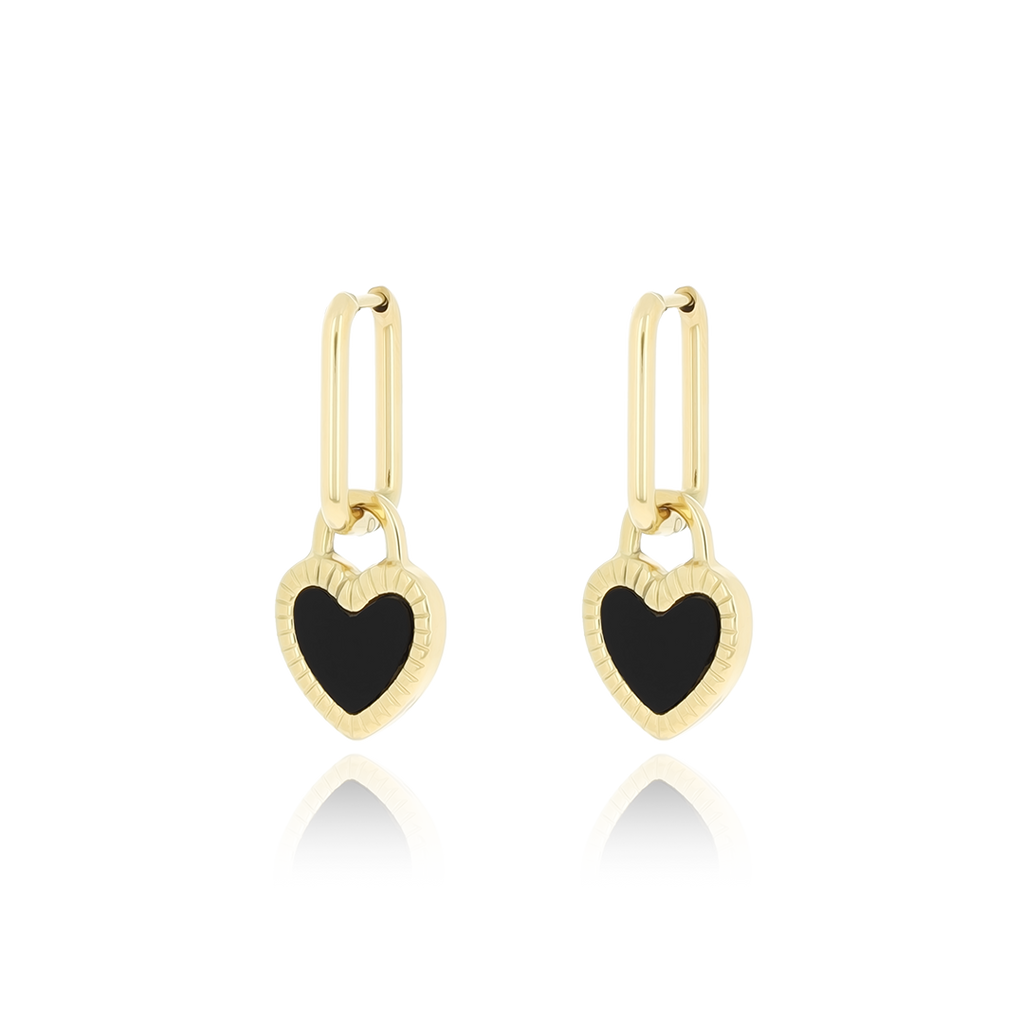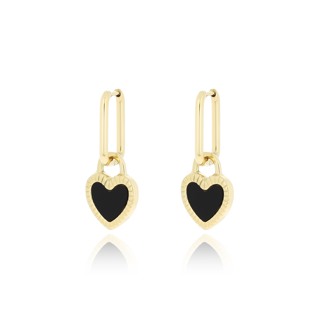 OOZOO Jewellery is a great addition to your personal accessories collection. This beautiful gold/ black/white earrings with heart is the perfect ladies accessory to complete your outfit. The earrings is 18mm cm long and is cm adjustable. This amazing piece is made of strong stainless steel with gold/ black/white plated PVD and therefore long-lasting. This material ensures you that your jewellery retains its beautiful color. This product (SE-3055) is covered by a 3 months warranty (see section 3 of our Refund, shipping & warranty policy).