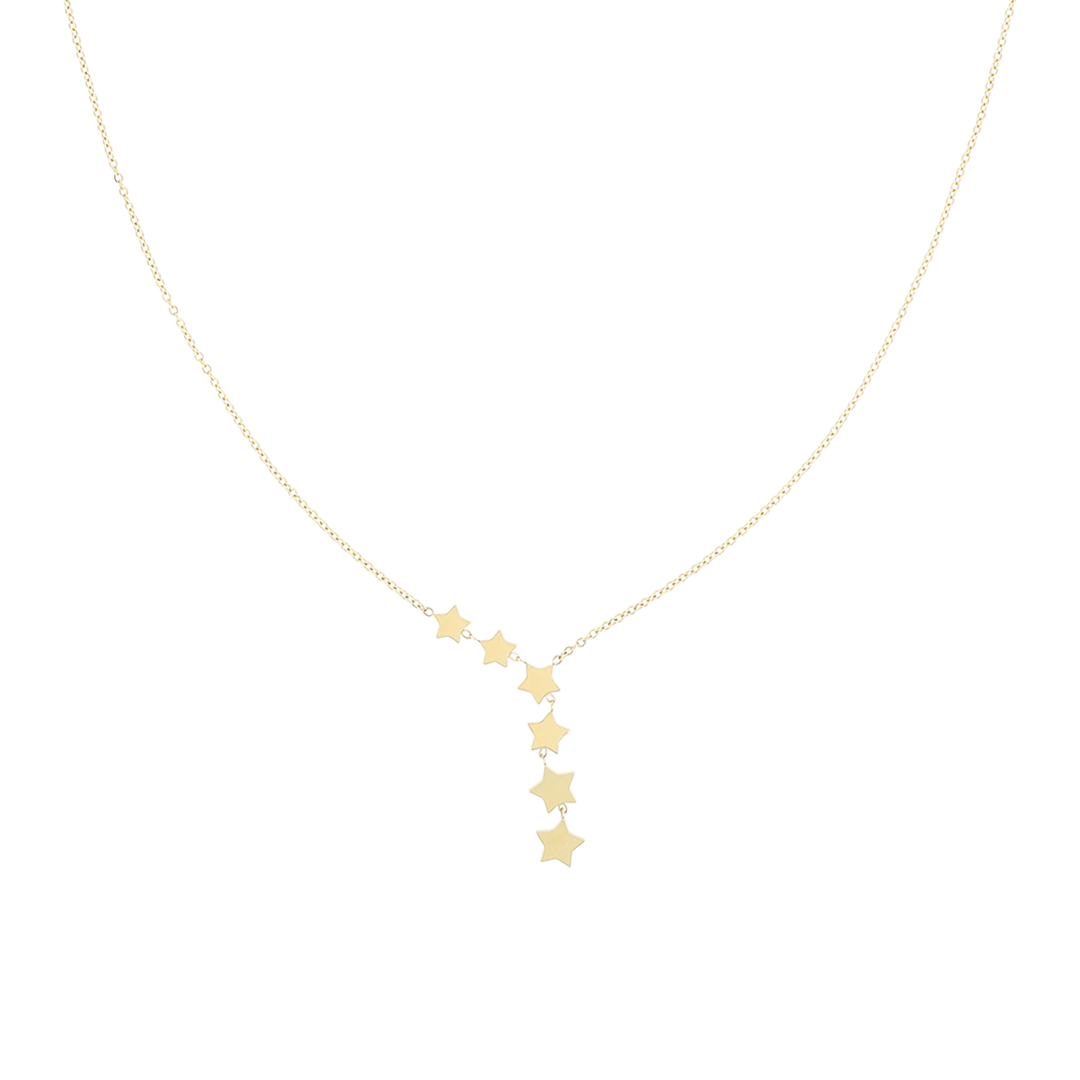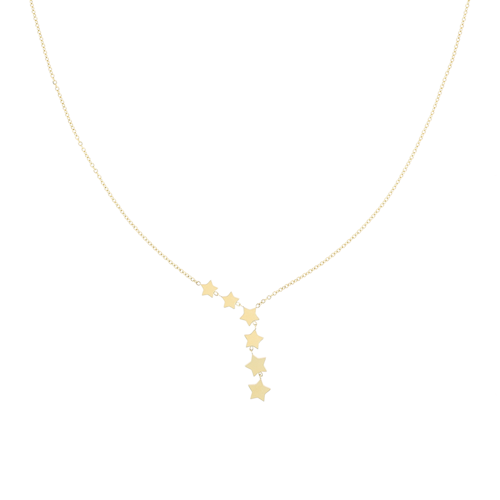 OOZOO Jewellery is a great addition to your personal accessories collection. This beautiful gold necklace with stars is the perfect ladies accessory to complete your outfit. The necklace is 41cm cm long and is 5cm cm adjustable. This amazing piece is made of strong stainless steel with gold plated PVD and therefore long-lasting. This material ensures you that your jewellery retains its beautiful color. This product (SN-2058) is covered by a 3 months warranty (see section 3 of our Refund, shipping & warranty policy).