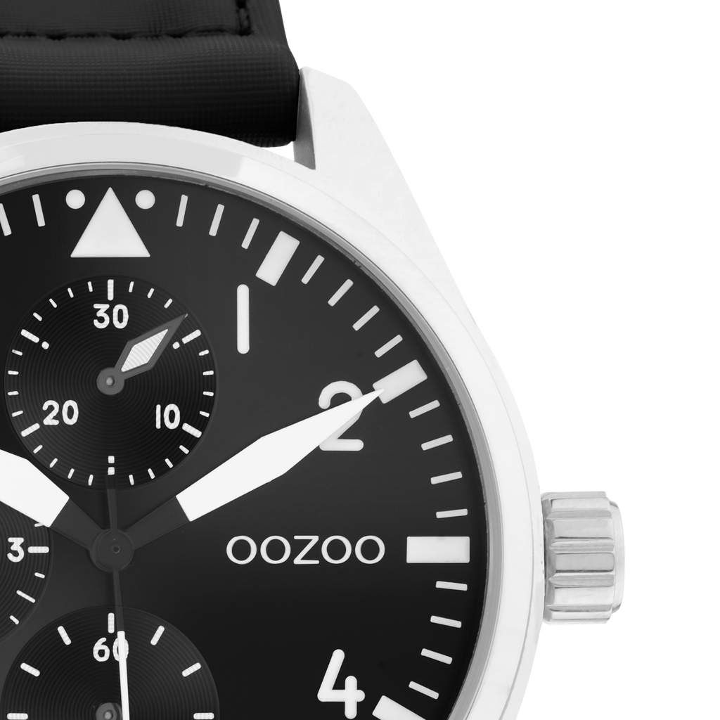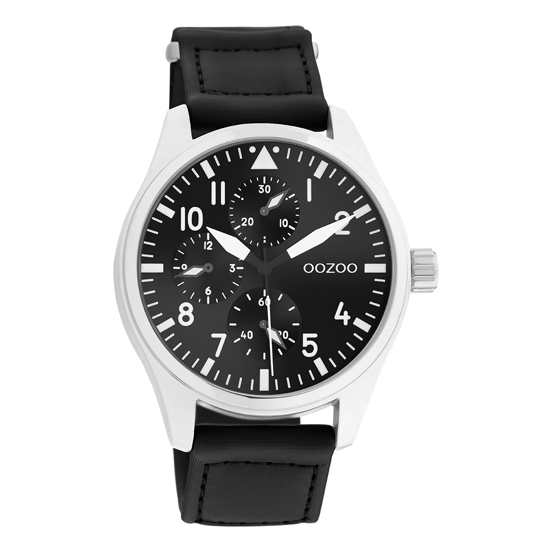 Silver coloured OOZOO watch with black velcro strap - C11009