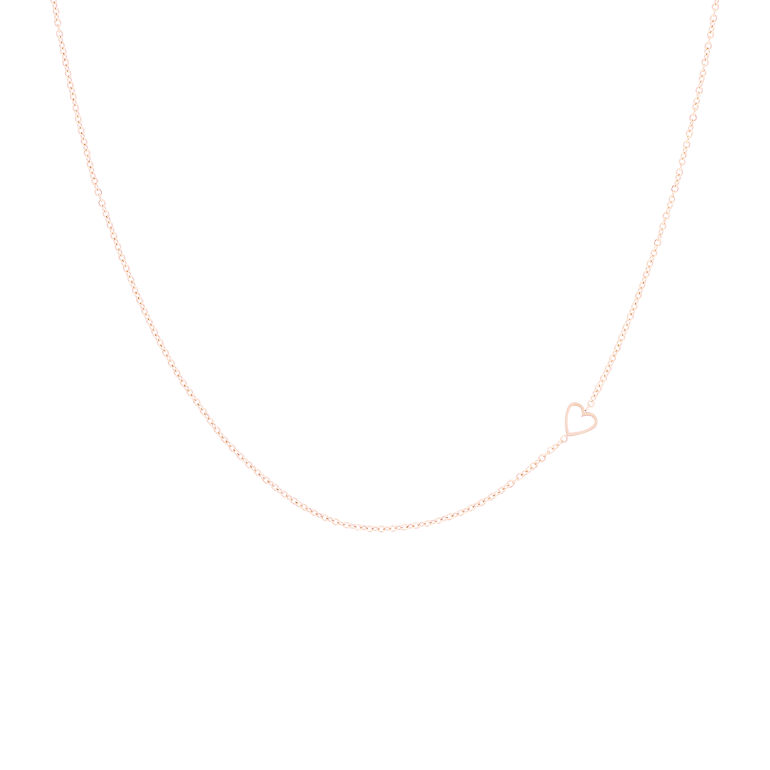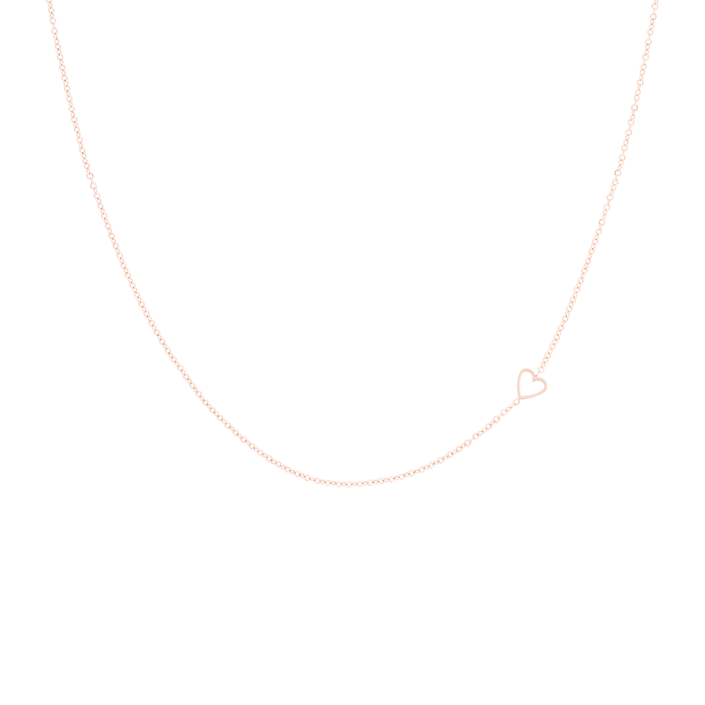 Rose gold coloured bracelet + stud earrings + necklace set with a heart