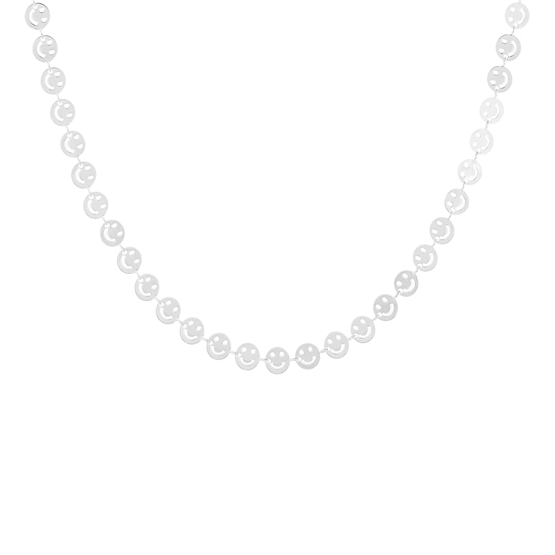 Silver coloured bracelet + necklace set with smileys