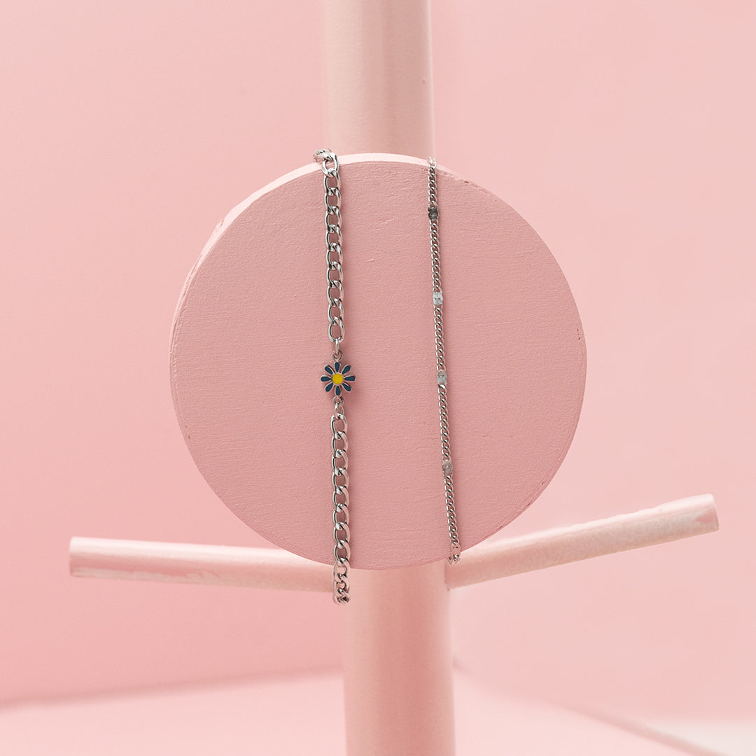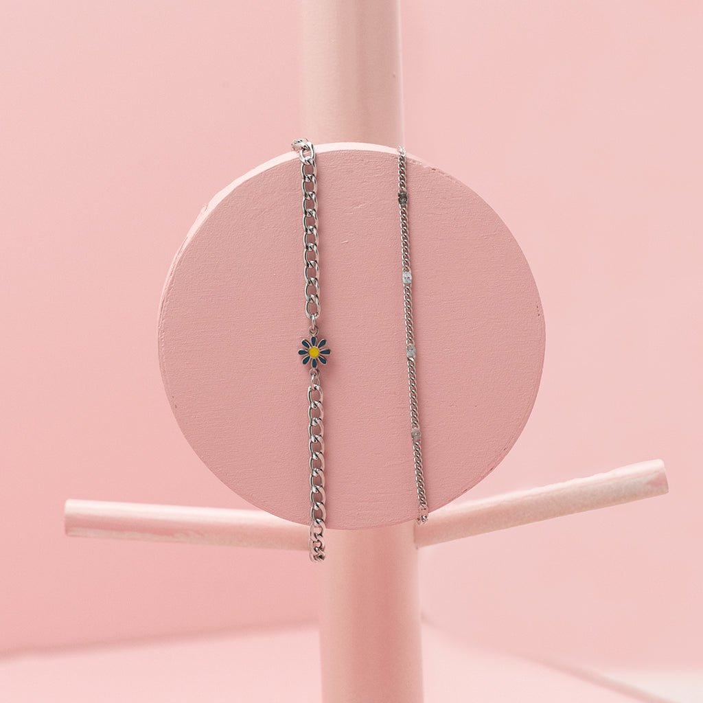 OOZOO Jewellery is a great addition to your personal accessories collection. This beautiful silver coloured bracelet with flower charm is the perfect ladies accessory to complete your outfit. The bracelet is 17 cm long and is 3 cm adjustable. This amazing piece is made of strong stainless steel with silver coloured plated PVD and therefore long-lasting. This material ensures you that your jewellery retains its beautiful color. This product (SB-1021) is covered by a 3 months warranty (see section 3 of our Refund, shipping & warranty policy).