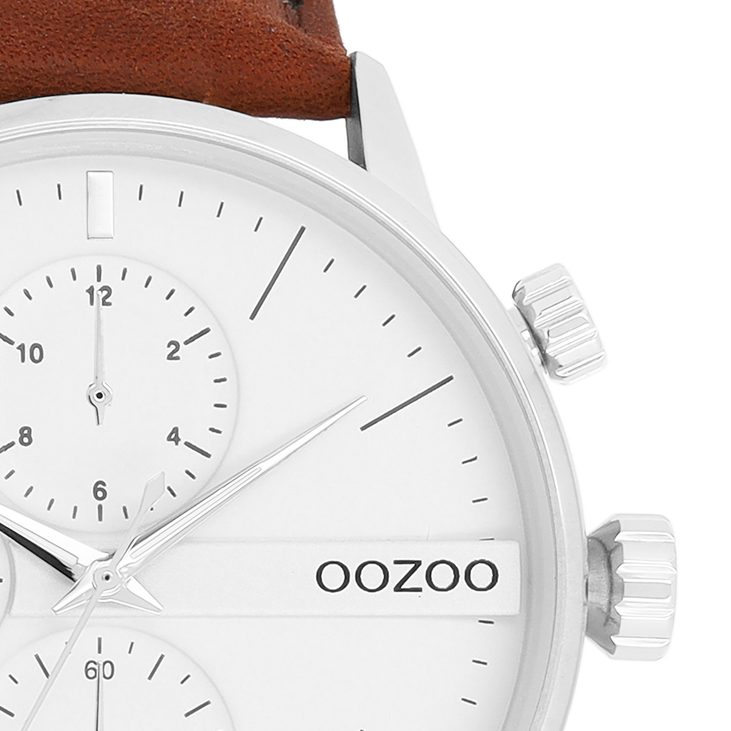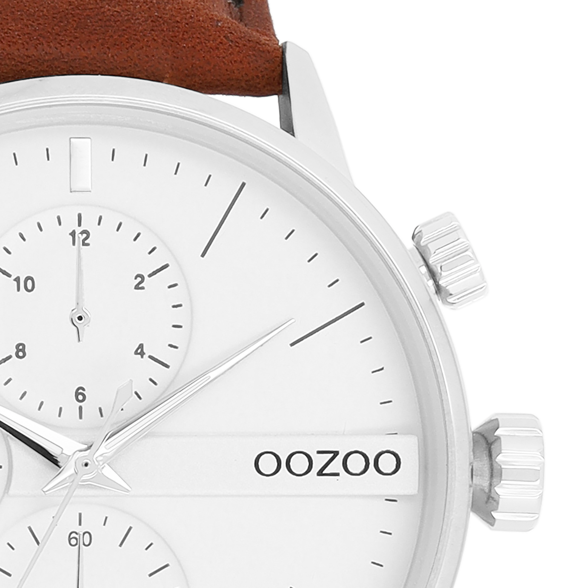 Silver coloured OOZOO watch with brown leather strap - C11220