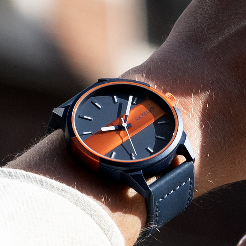 Blue/fluo orange OOZOO watch with blue leather strap - C11232