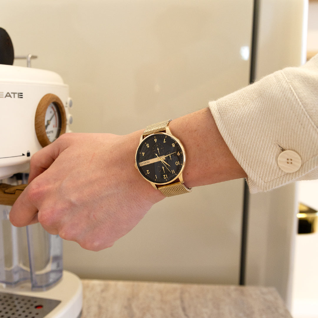 Gold coloured OOZOO watch with metal mesh bracelet - C11302
