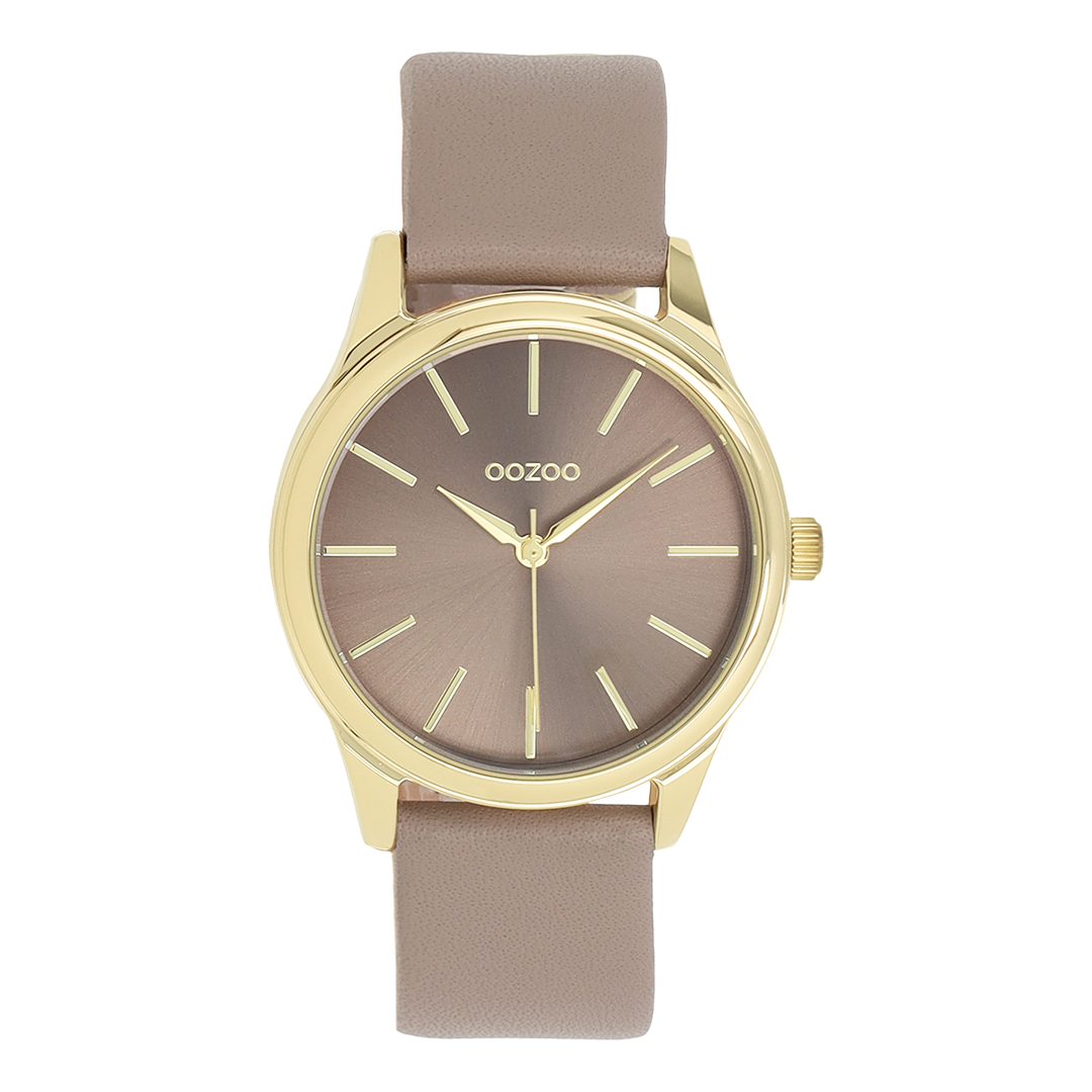 Gold coloured OOZOO watch with taupe leather strap - C11677
