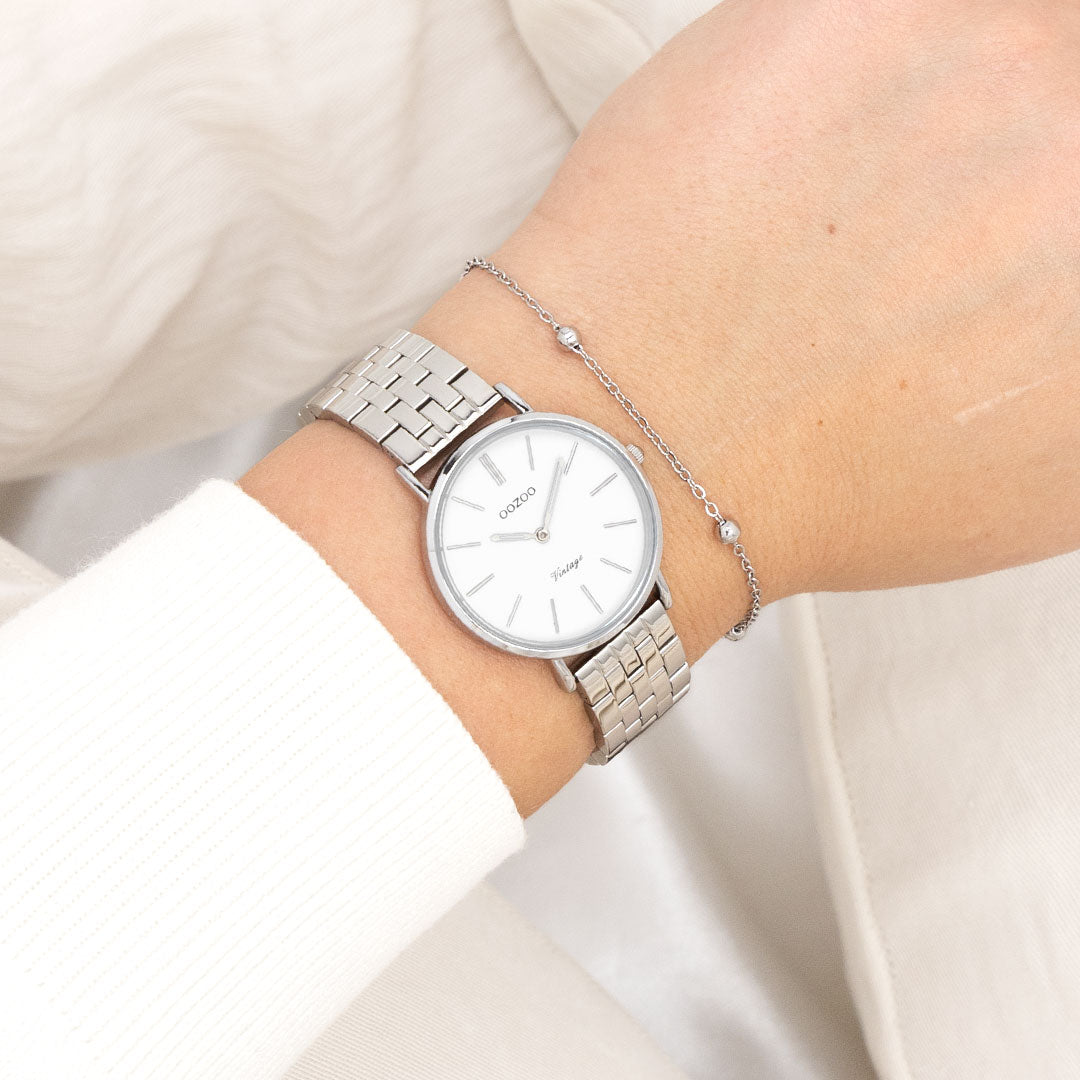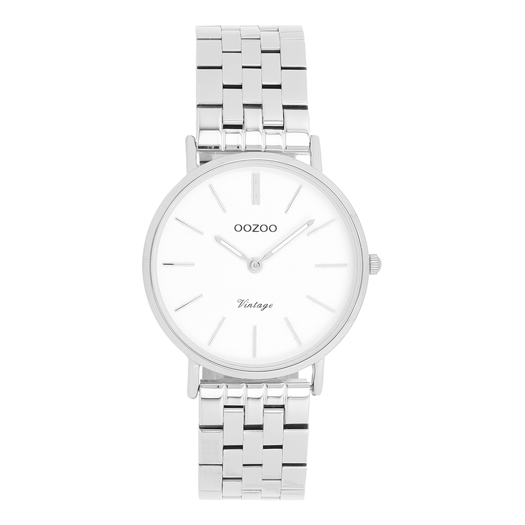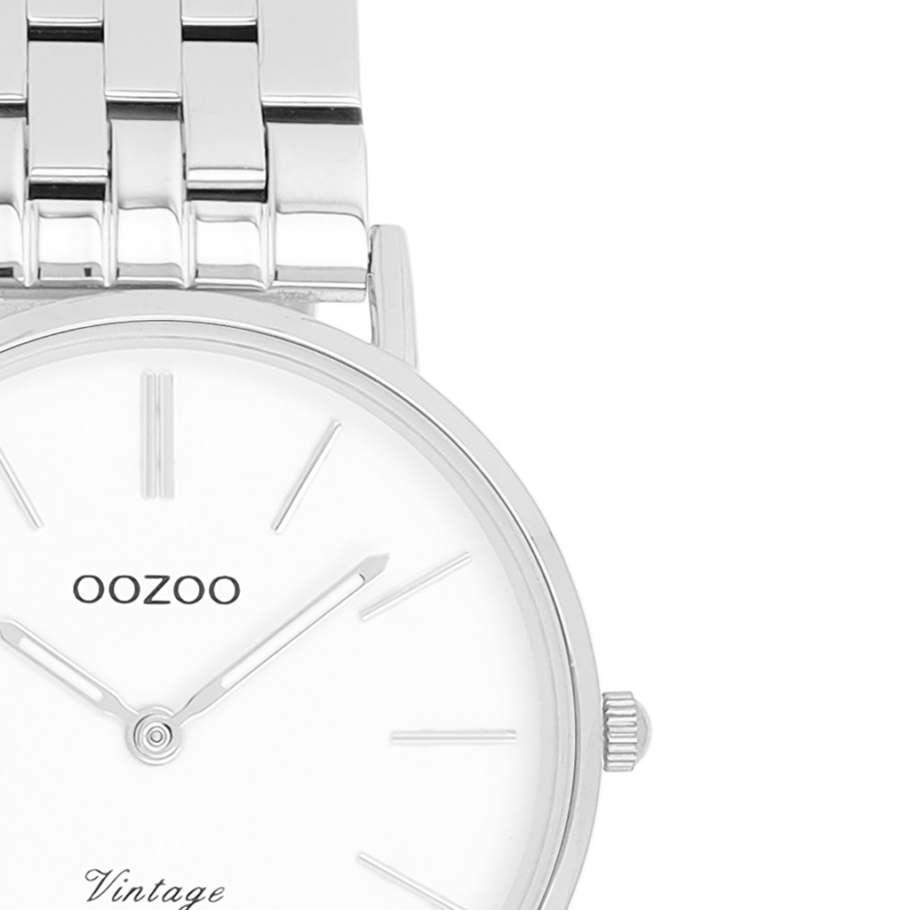 The classic look stays key in this trendy series and therefore, this round OOZOO vintage design with a playful wink is the season must-have! This unisex watch is the perfect combination of fashion and comfort with its 32 mm silver coloured metal watch case and white dial. The shiny silver coloured stainless steel bracelet makes this watch a trendy accessory, which you can wear every day. The dial has silver coloured stripes digits and matching hands. The C20405 adds the sparkle to your outfit. The mineral glass lays in a mm slim metal watch case with IP-plating. This design has a stainless steel backplate and is nickel safe. This watch has a 2ATM Japanese movement and is covered by a 2 year warranty (see section 3 of our Refund, shipping & warranty policy).
