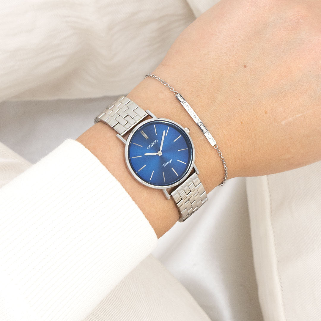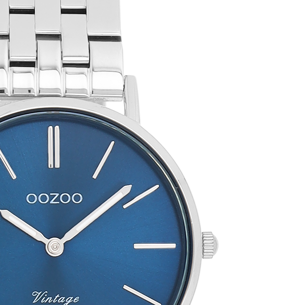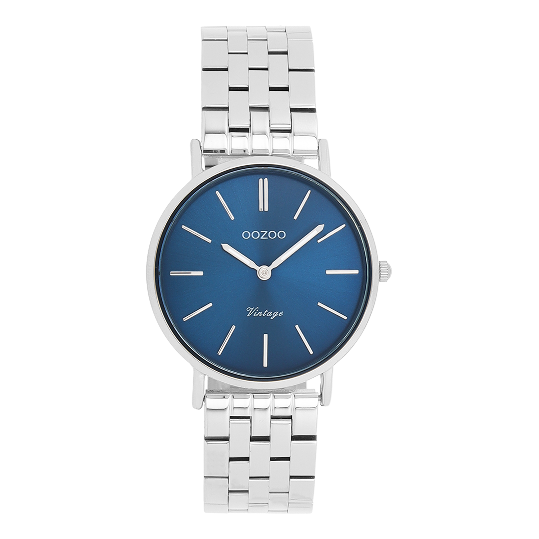 The classic look stays key in this trendy series and therefore, this round OOZOO vintage design with a playful wink is the season must-have! This unisex watch is the perfect combination of fashion and comfort with its 32 mm silver coloured metal watch case and blue sunray dial. The shiny silver coloured stainless steel bracelet makes this watch a trendy accessory, which you can wear every day. The dial has silver coloured stripes digits and matching hands. The C20406 adds the sparkle to your outfit. The mineral glass lays in a mm slim metal watch case with IP-plating. This design has a stainless steel backplate and is nickel safe. This watch has a 2ATM Japanese movement and is covered by a 2 year warranty (see section 3 of our Refund, shipping & warranty policy).
