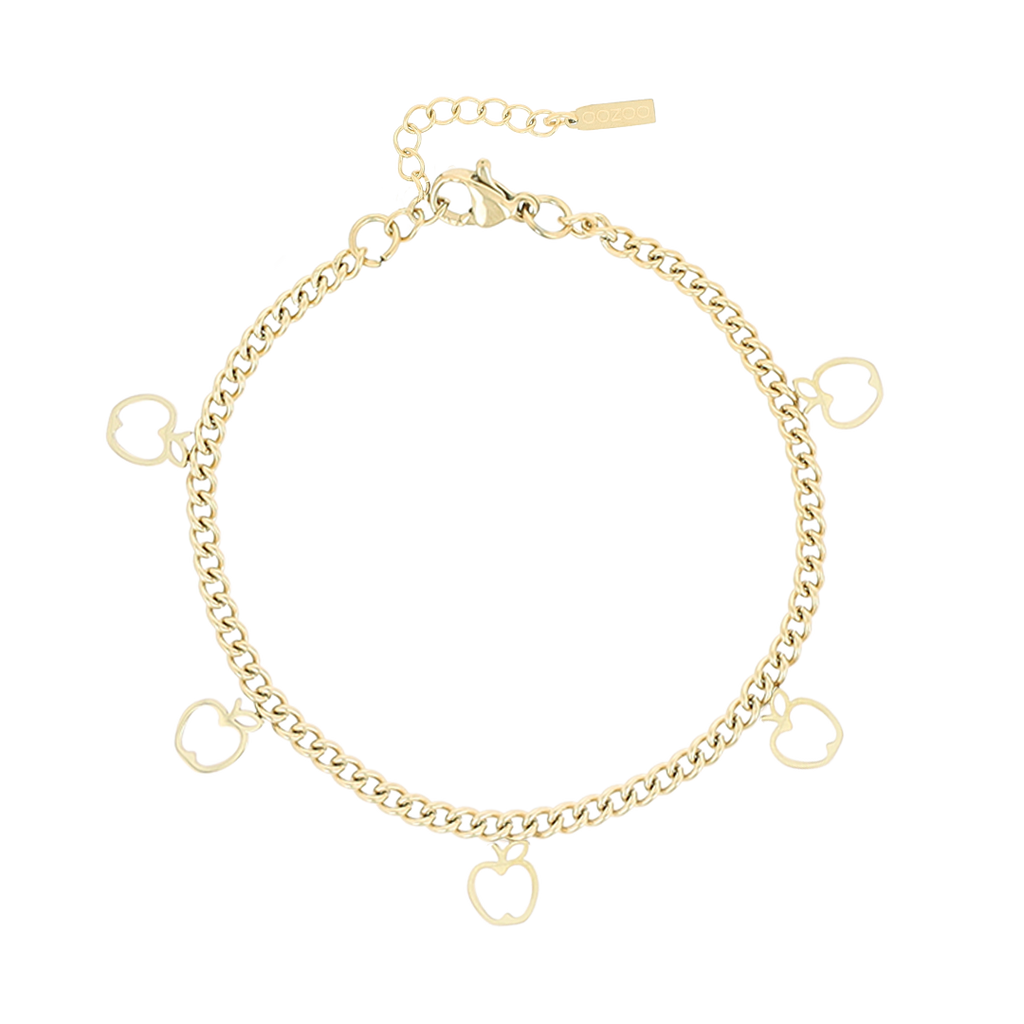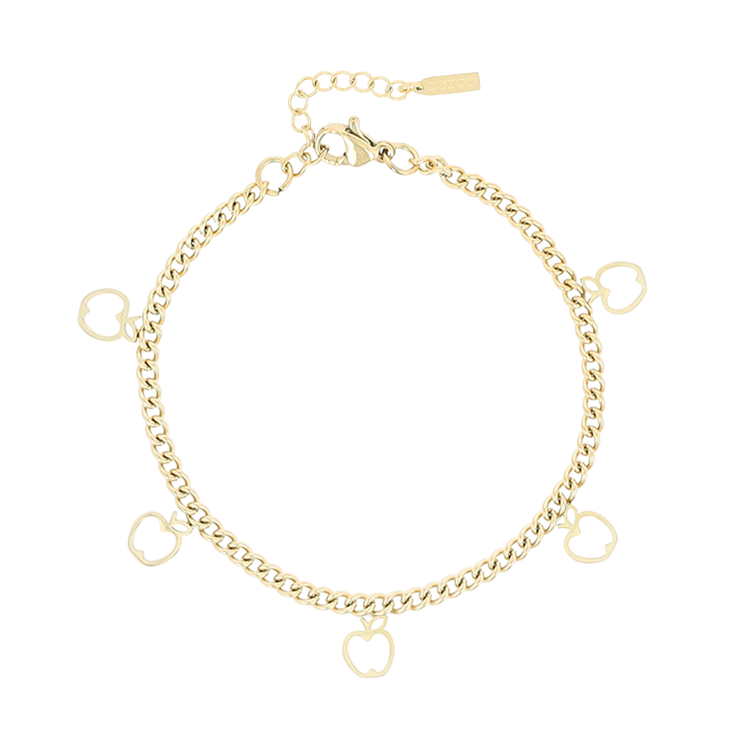 An OOZOO Jewellery set is an amazing gift for someone you cherish or just as a present to yourself! This beautiful gold coloured set of matching necklace and bracelet with apples is the perfect fit. The necklace is 42 cm long (+8 cm adjustable) and the bracelet is 17 cm long (+3 cm adjustable). These amazing pieces are made of stainless steel with gold coloured plated PVD and therefore long-lasting. This material ensures you that your jewellery retains its beautiful color. These products (SB-1043 + SN-2043) are covered by 3 months of warranty (see section 3 of our Refund, shipping & warranty policy).