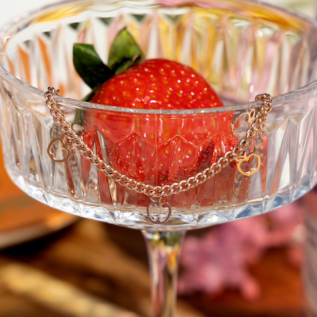 OOZOO Jewellery is a great addition to your personal accessories collection. This beautiful rose gold coloured bracelet with apples is the perfect ladies accessory to complete your outfit. The bracelet is 17 cm long and is 3 cm adjustable. This amazing piece is made of strong stainless steel with rose gold coloured plated PVD and therefore long-lasting. This material ensures you that your jewellery retains its beautiful color. This product (SB-1044) is covered by a 3 months warranty (see section 3 of our Refund, shipping & warranty policy).