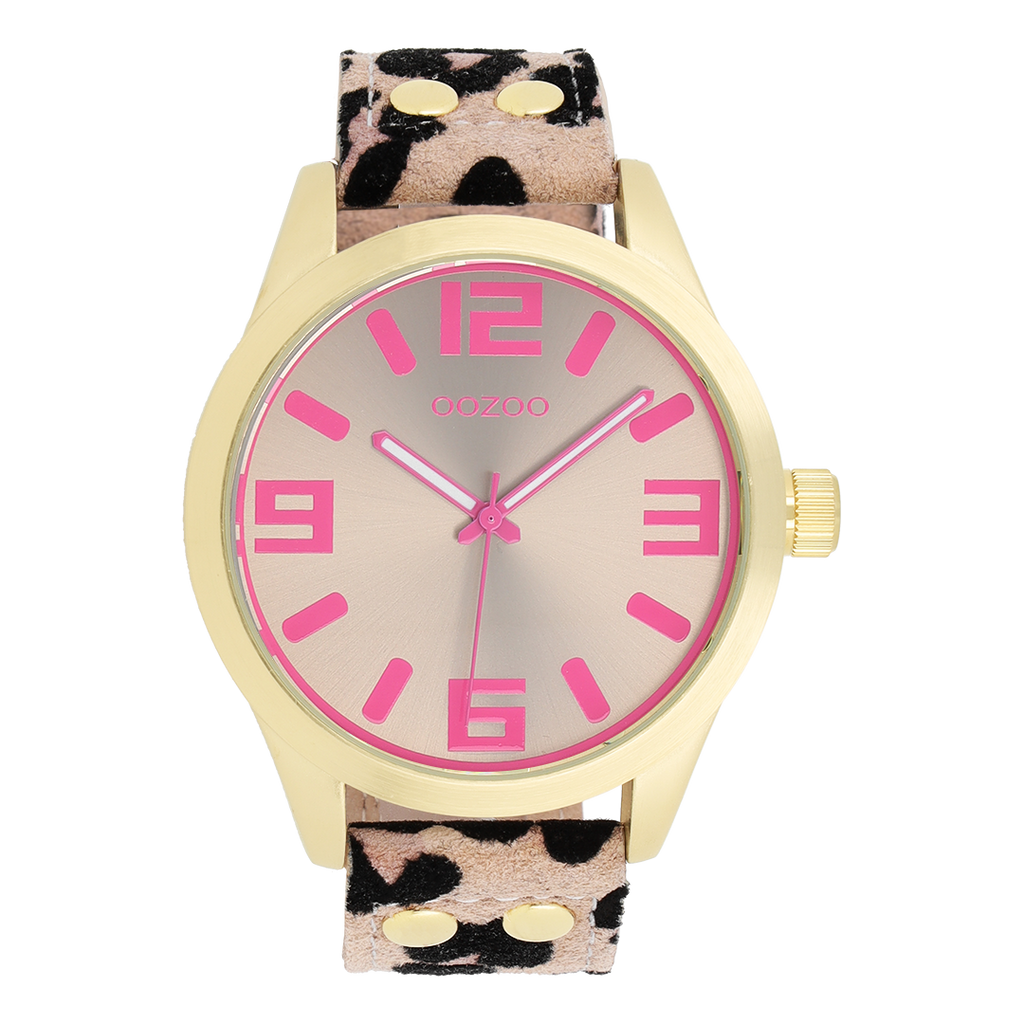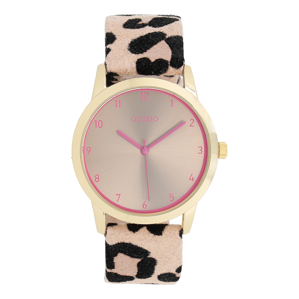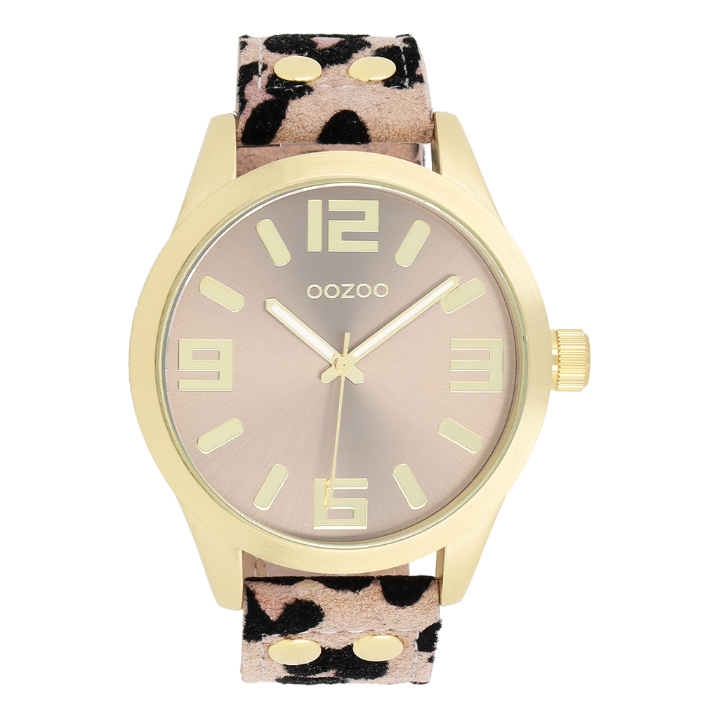Gold coloured OOZOO watch with brown leather strap - C11372
