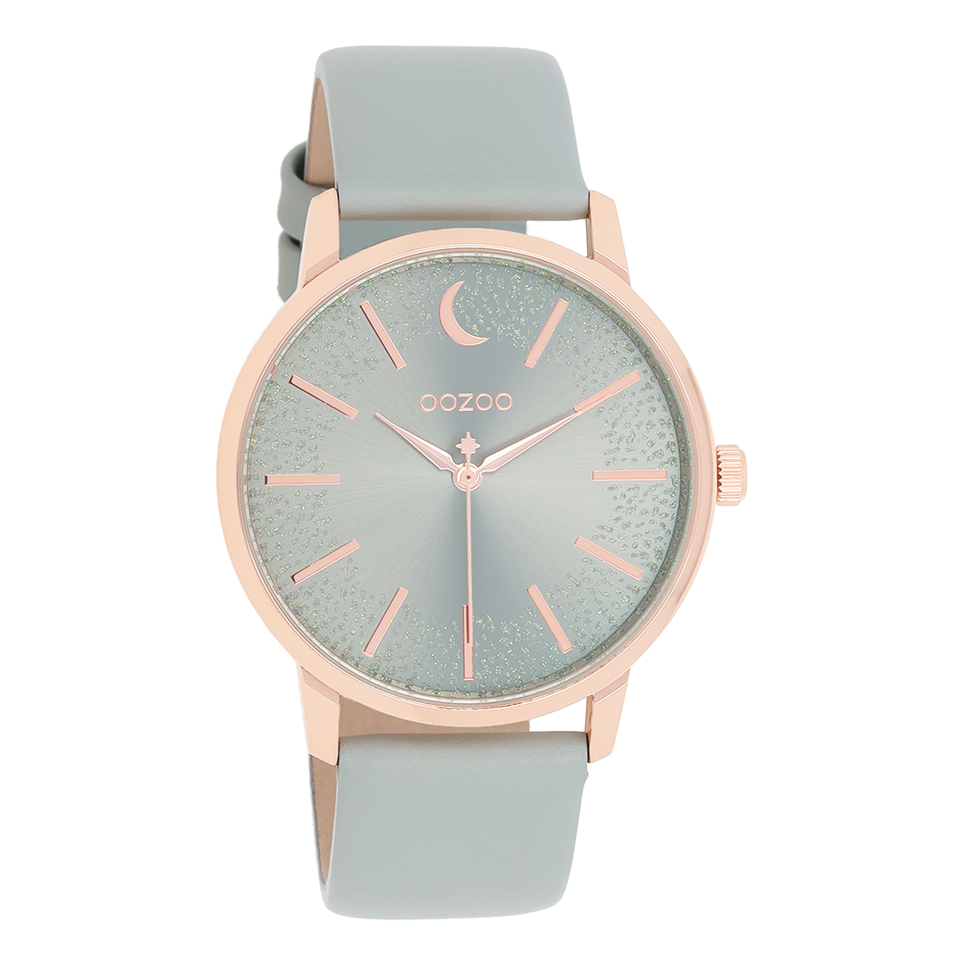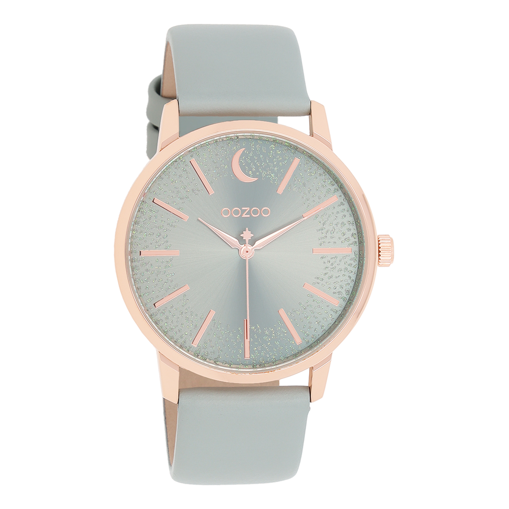 Rose gold coloured OOZOO watch with stone grey leather strap - C11040