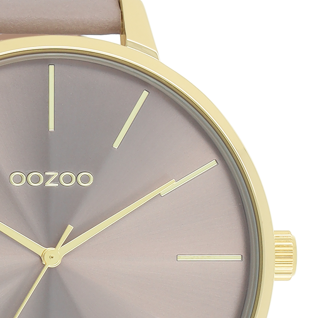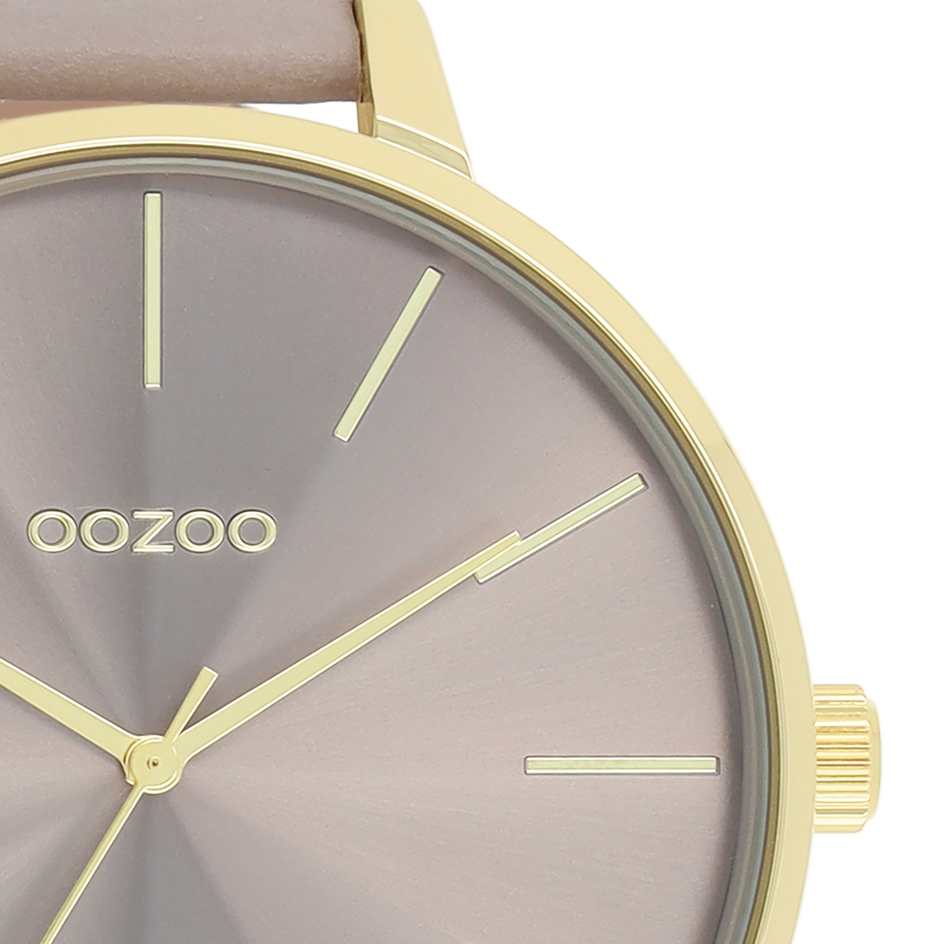 Gold coloured OOZOO watch with taupe leather strap - C11256