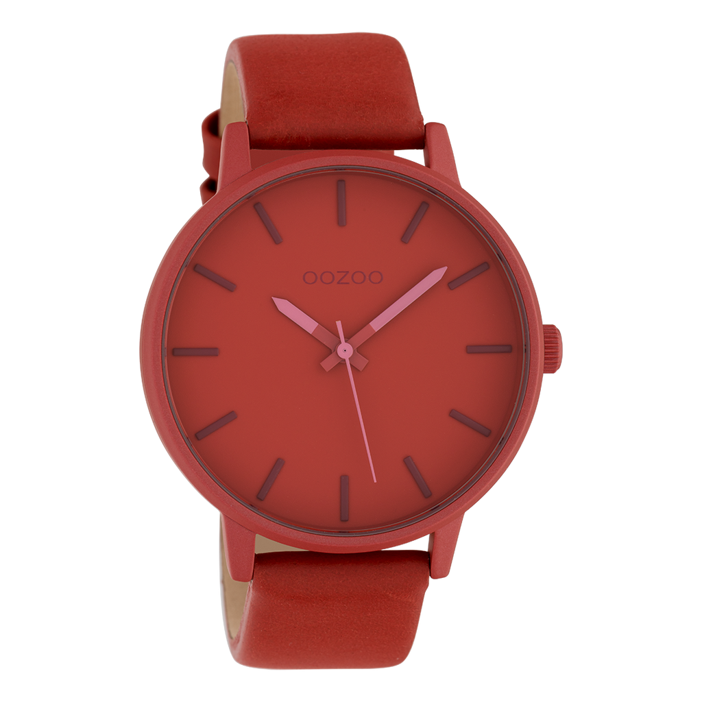 Rose gold coloured OOZOO watch with red leather strap - C11053