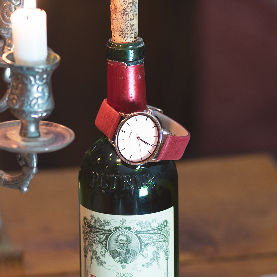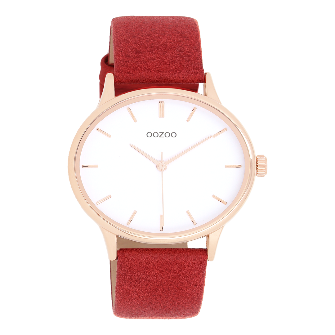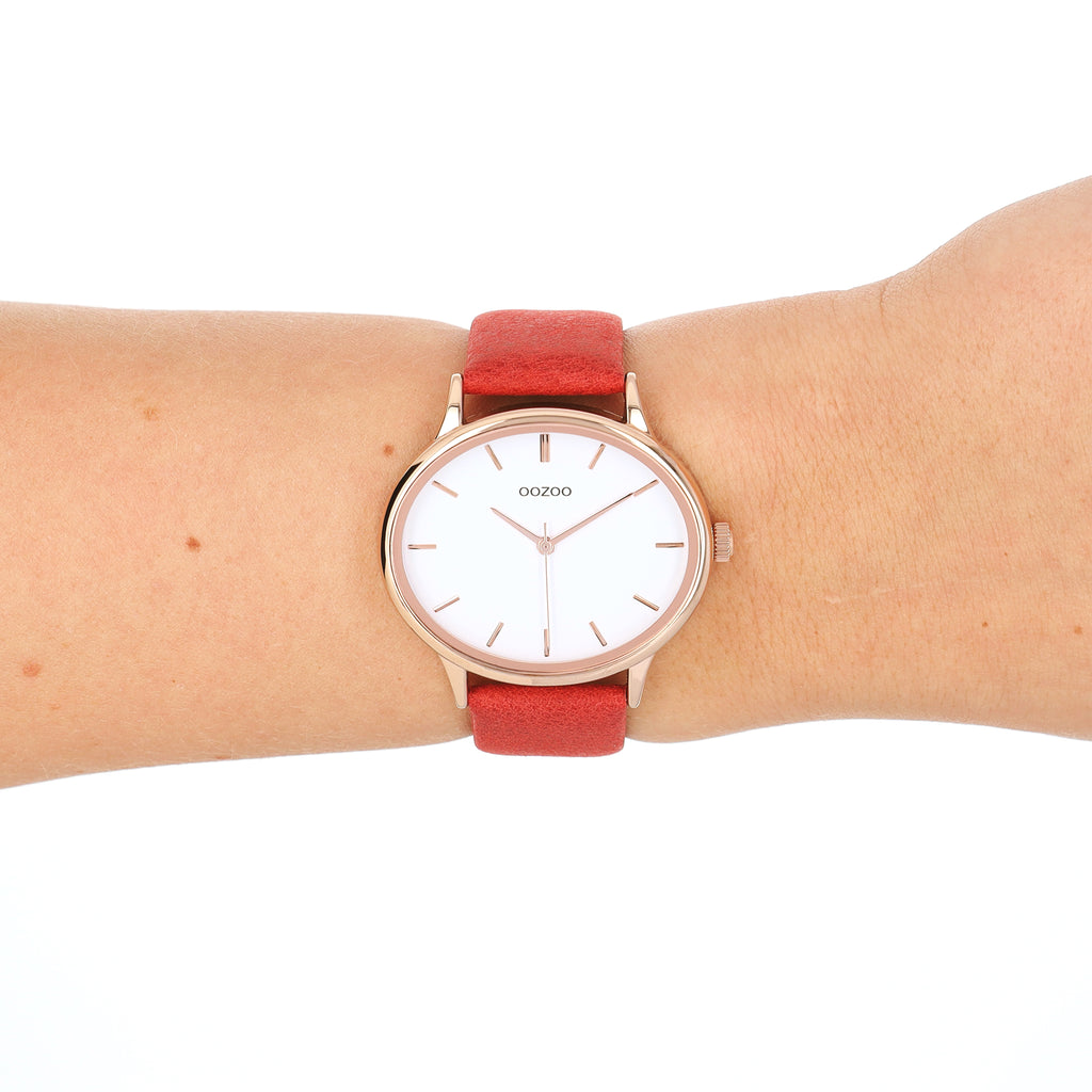 Color de oro rosa OOZOO Mira con correa de cuero rojo - C11053