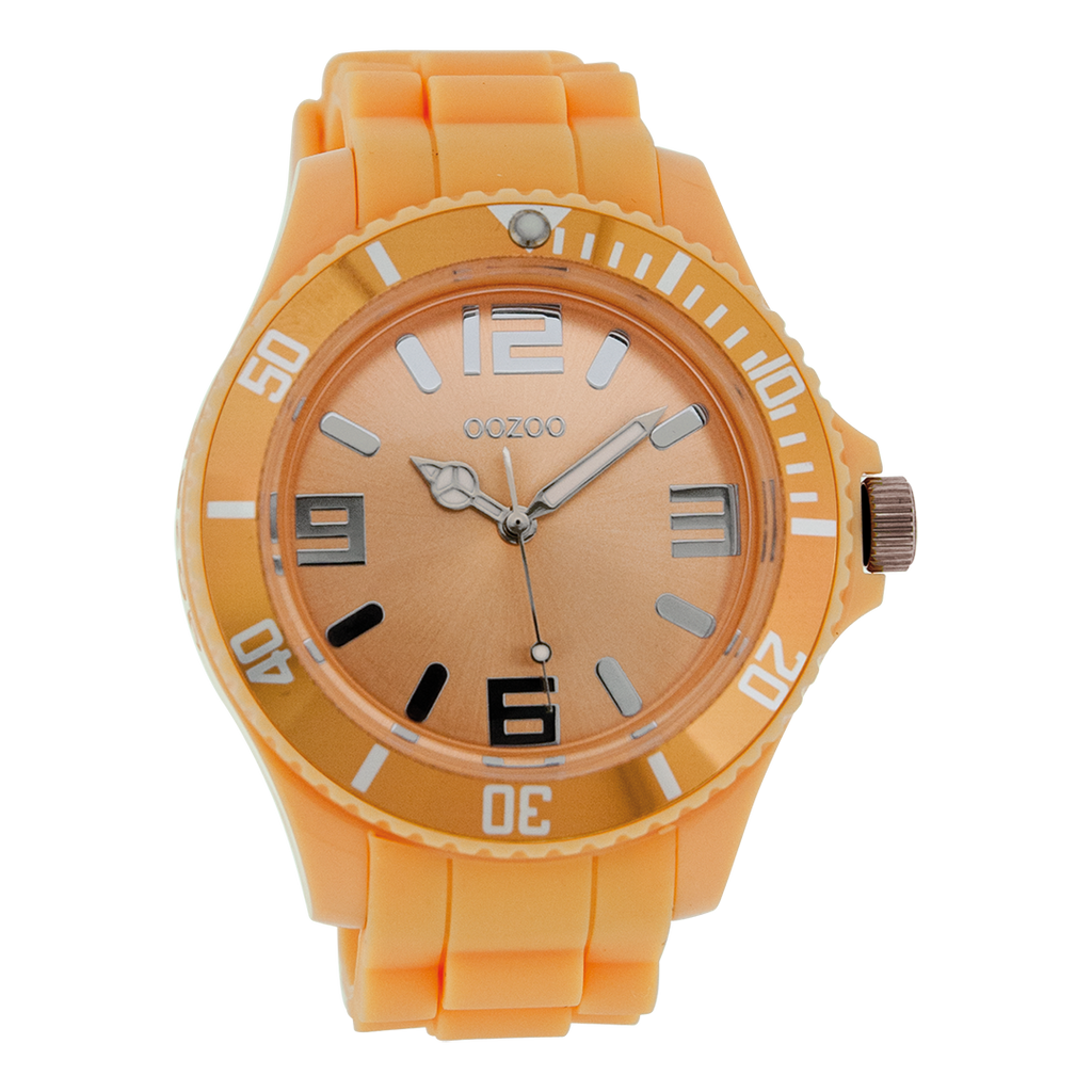 Neon red OOZOO watch with coral coloured leather strap - C11185