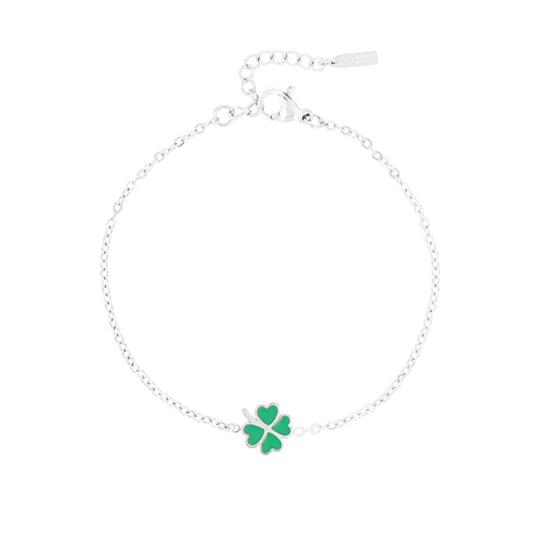 Silver coloured/green bracelet with a clover