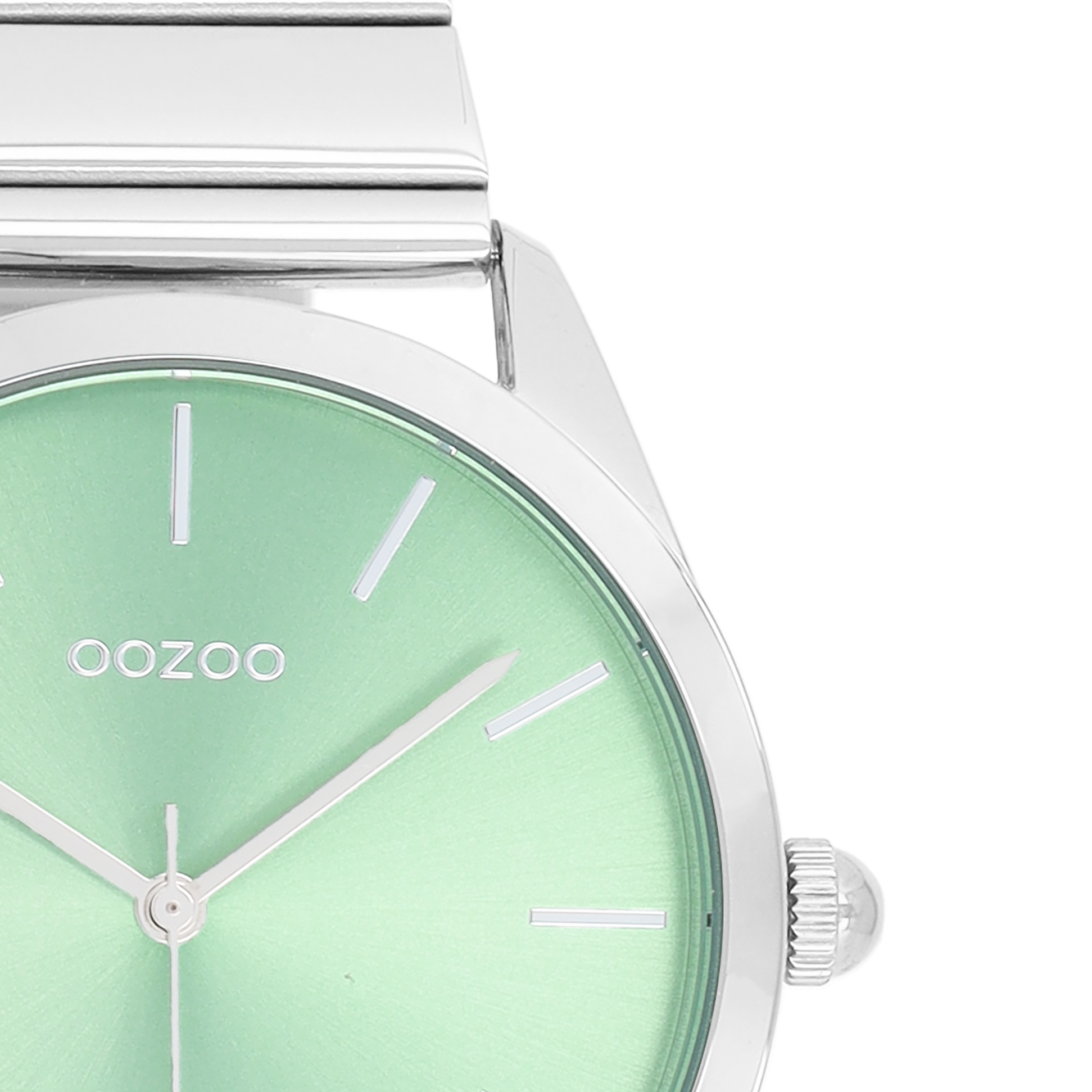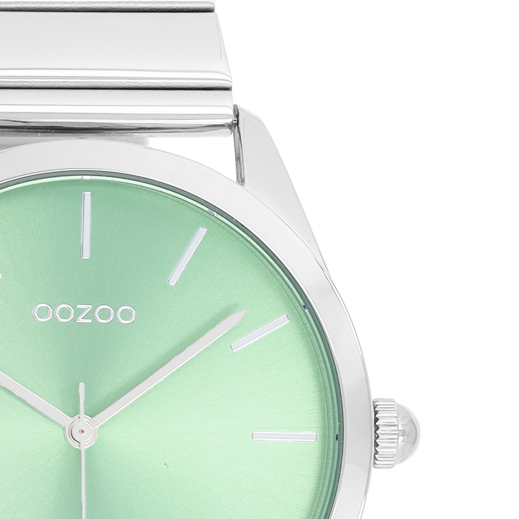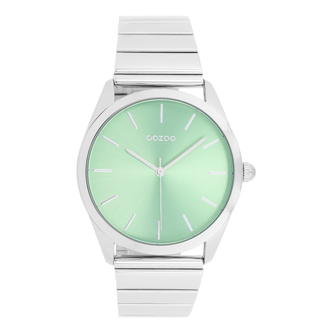 Stand out with this beautiful round unisex design from the trendy OOZOO Timepieces collection. The C11516 has a shiny silver coloured stainless steel bracelet and 40 mm silver coloured metal watch case. You are making quite the fashion statement with this pistachio green sunray dial, silver coloured stripes digits and matching hands. This essential watch for your wardrobe has a mineral glass, stainless steel backplate and is nickel safe. This watch has a 2ATM Japanese movement and is covered by a 2 year warranty (see section 3 of our Refund, shipping & warranty policy).