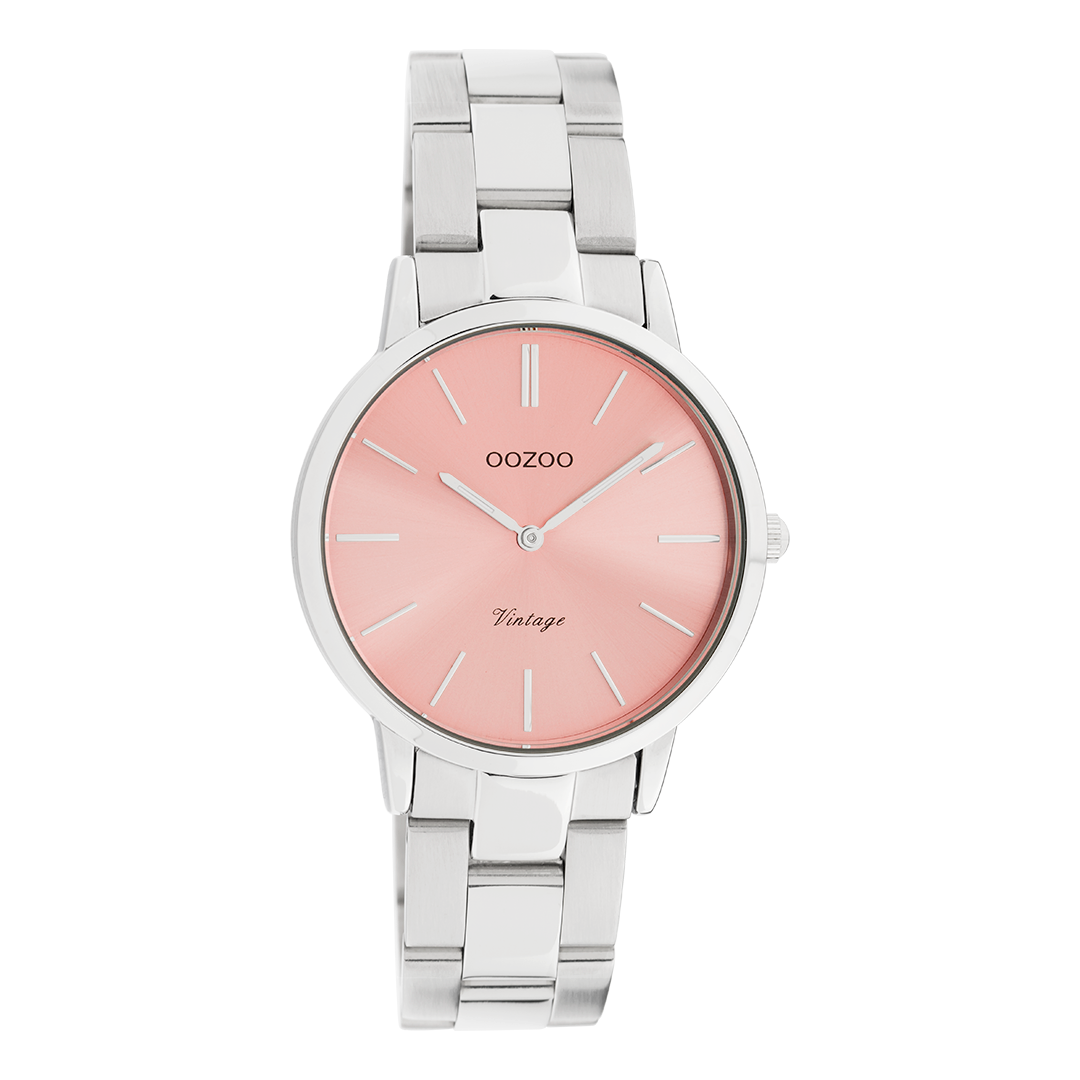 La sofisticación y la elegancia son dos elementos de nuestra hermosa OOZOO Vintage Clásicos. Este diseño redondo clásico con un toque contemporáneo es algo para todos. Este reloj unisex es la combinación perfecta de comodidad y moda con su estuche de metal de color plateado de 34 mm y su rosa con dial Sun Ray. El brazalete de acero inoxidable de color mate/plateado brillante hace de este reloj un clásico de todos los tiempos que puedes usar con cada ocasión. El dial tiene dígitos de rayas de color plateado y manos a juego. El C20040 es imprescindible para su ropa cada vez. El vidrio mineral se encuentra en una funda de reloj de metal delgada de 6,9 mm con placas de IP. Este diseño tiene una placa posterior de acero inoxidable y es seguro de níquel. Este reloj tiene un movimiento japonés de 2atm y está cubierto por una garantía de 2 años (ver Sección 3 de nuestra política de reembolso, envío y garantía).