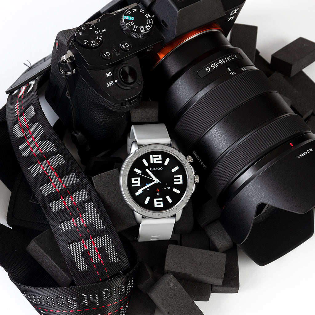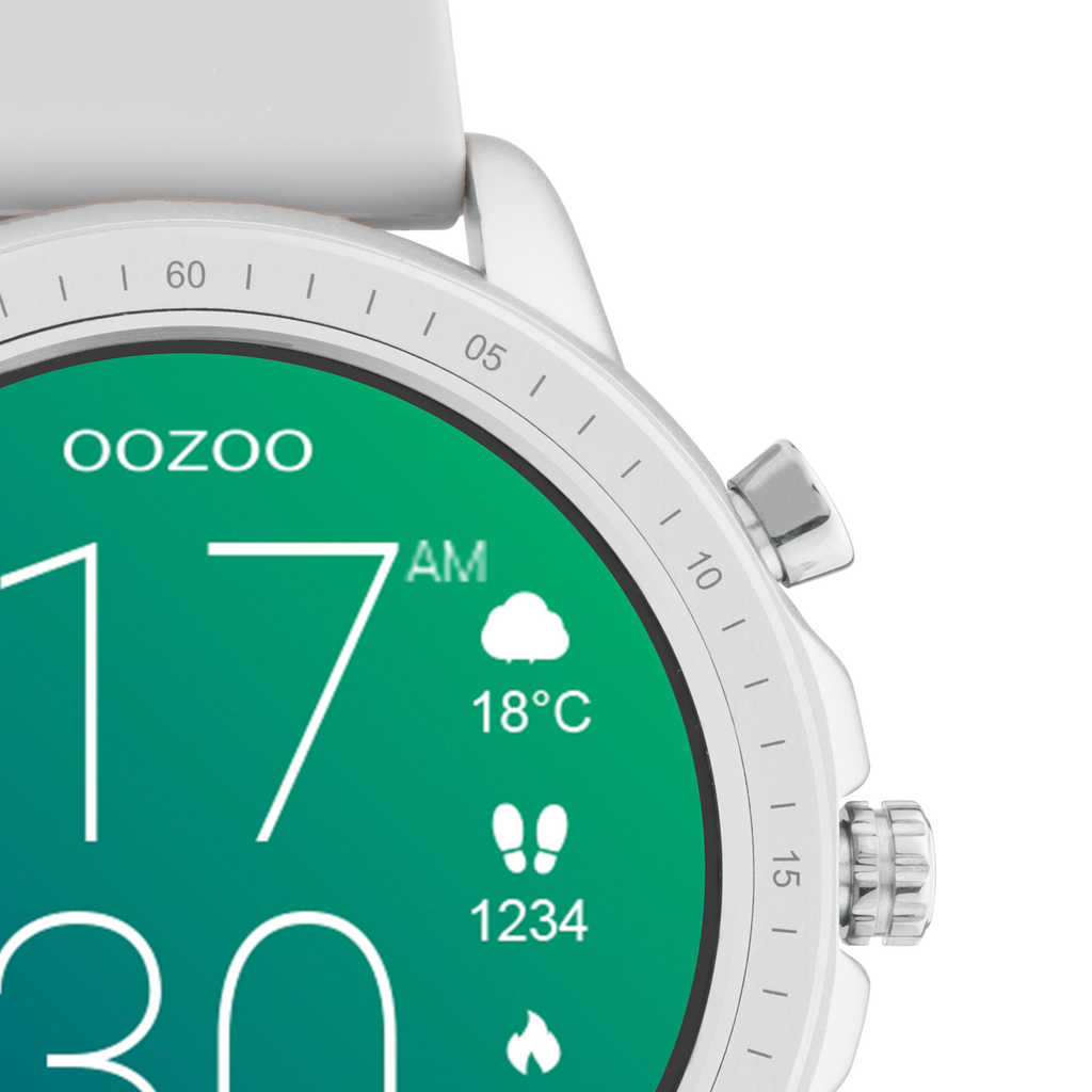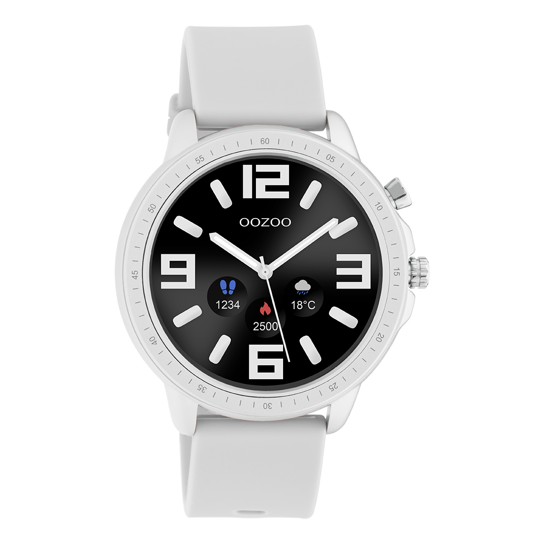 Color plateado OOZOO reloj inteligente con correa de goma gris de piedra - Q00311