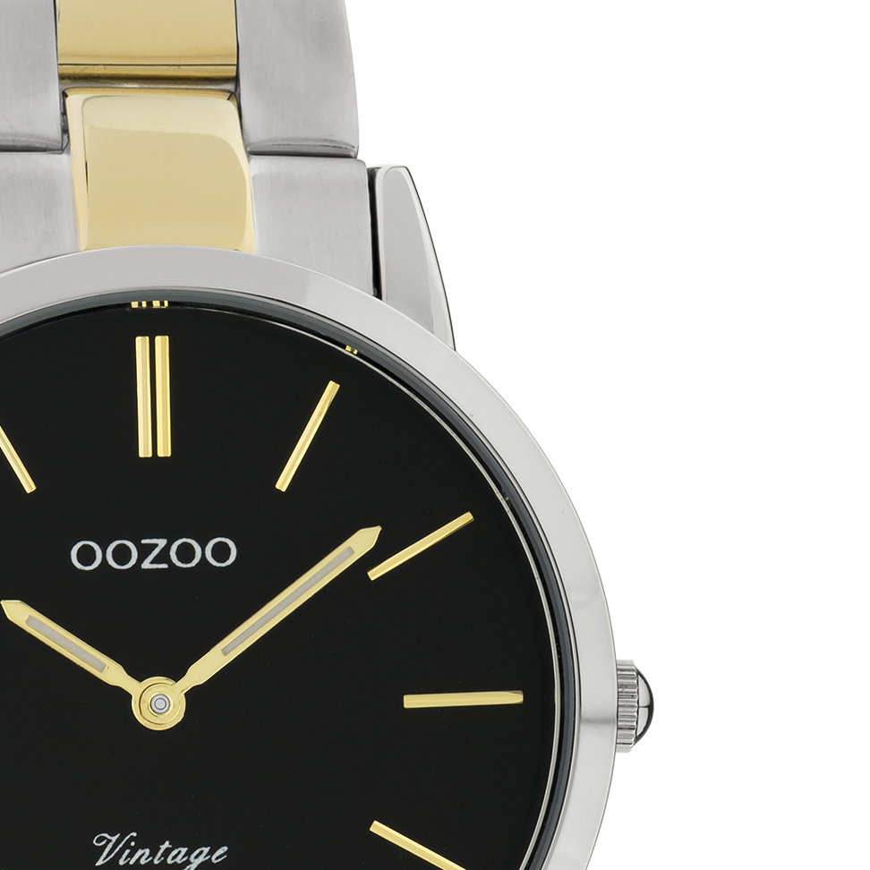 Sophistication and elegance are two elements of our beautiful OOZOO Vintage Classics. This classic round design with a contemporary twist is something for everyone. This unisex watch is the perfect combination of comfort and fashion with its 34 mm silver/gold coloured metal watch case and black dial. The matte/shiny silver/gold coloured stainless steel bracelet makes this watch an all-time classic which you can wear with every occasion. The dial has gold coloured stripes digits and matching hands. The C20107 is a must have for your every-wear. The mineral glass lays in a 6,9 mm slim metal watch case with IP-plating. This design has a stainless steel backplate and is nickel safe. This watch has a 2 Japanese movement and is covered by a 2 year warranty (see section 3 of our Refund, shipping & warranty policy).