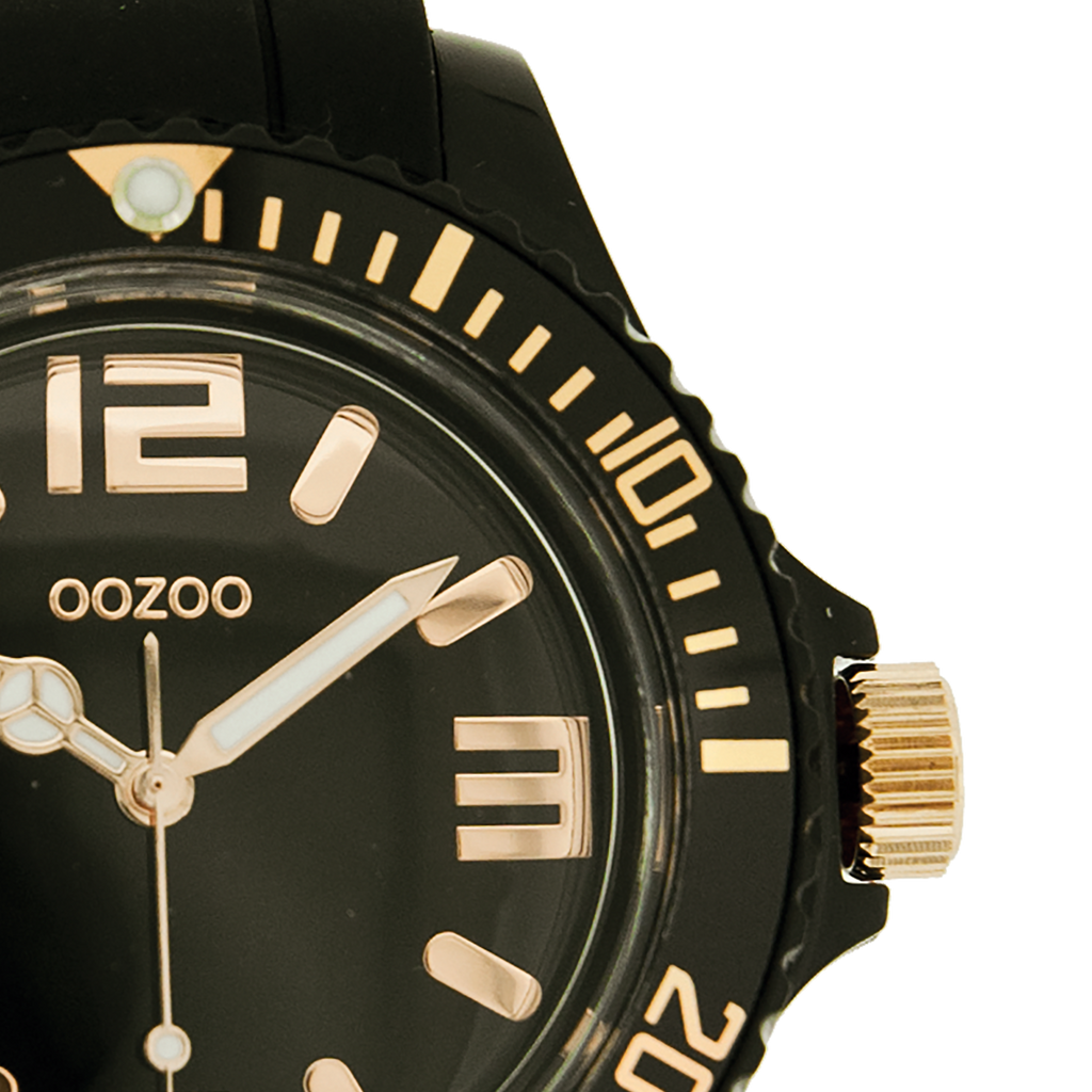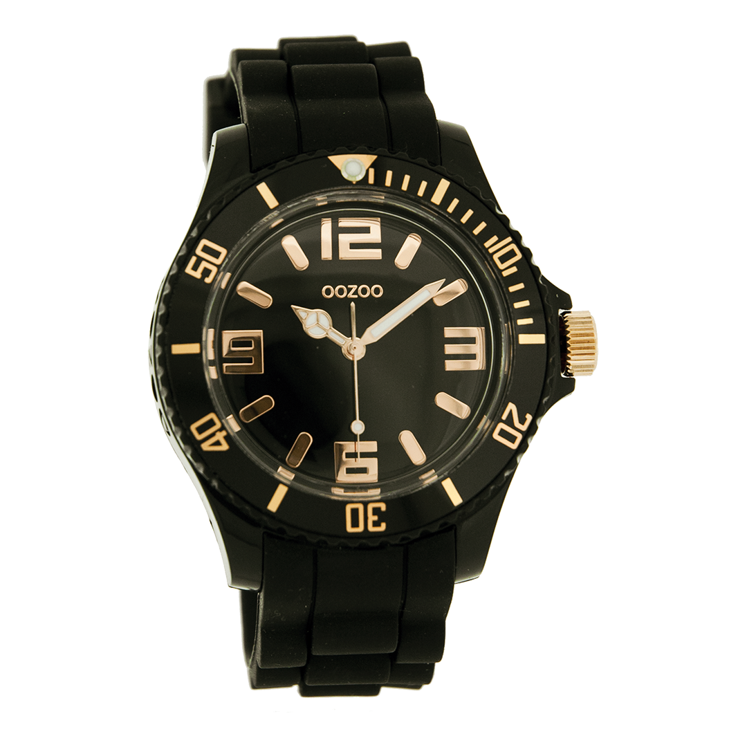 Stand out with this beautiful round unisex design from the trendy OOZOO Timepieces collection. The C4354 has a black rubber strap and 43 mm black plastic watch case. You are making quite the fashion statement with this black dial, rose gold coloured stripes and numbers digits and rose gold coloured/white hands. This essential watch for your wardrobe has a mineral glass, stainless steel backplate and is nickel safe. This watch has a 2 Japanese movement and is covered by a 2 year warranty (see section 3 of our Refund, shipping & warranty policy).