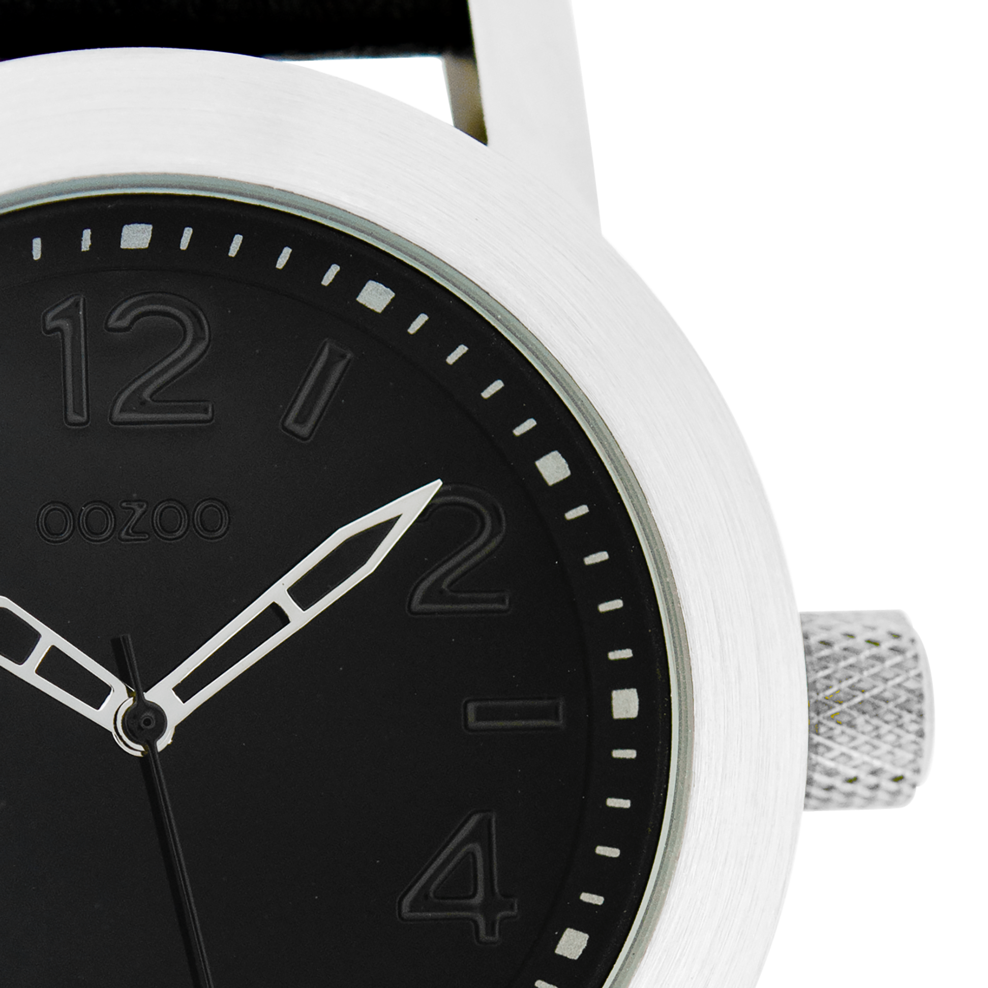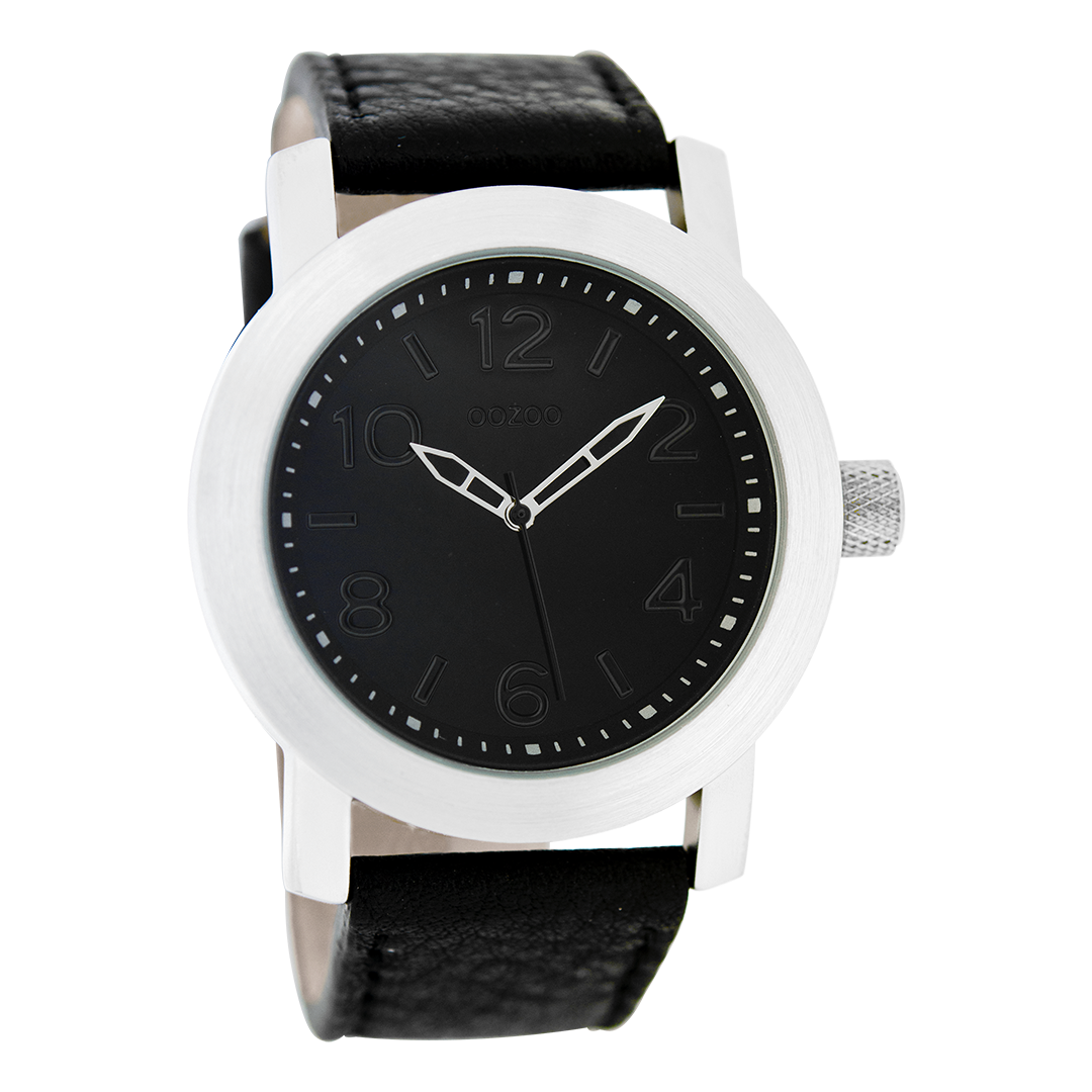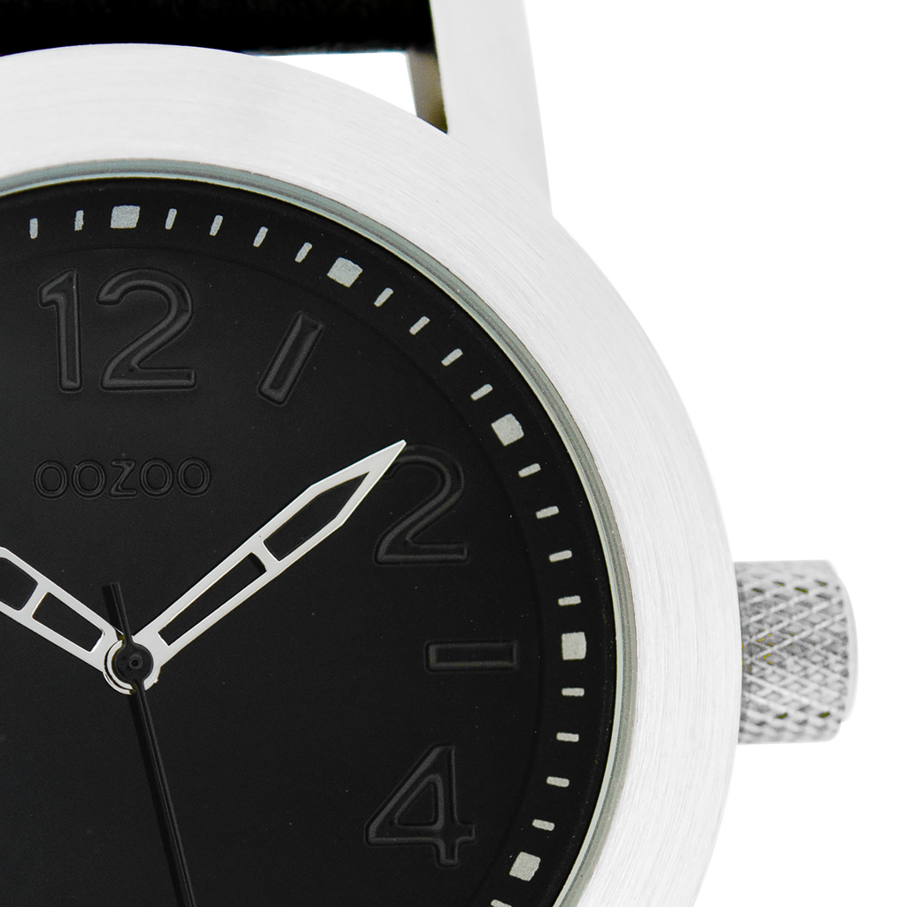 Silver coloured OOZOO watch with black leather strap - C5154