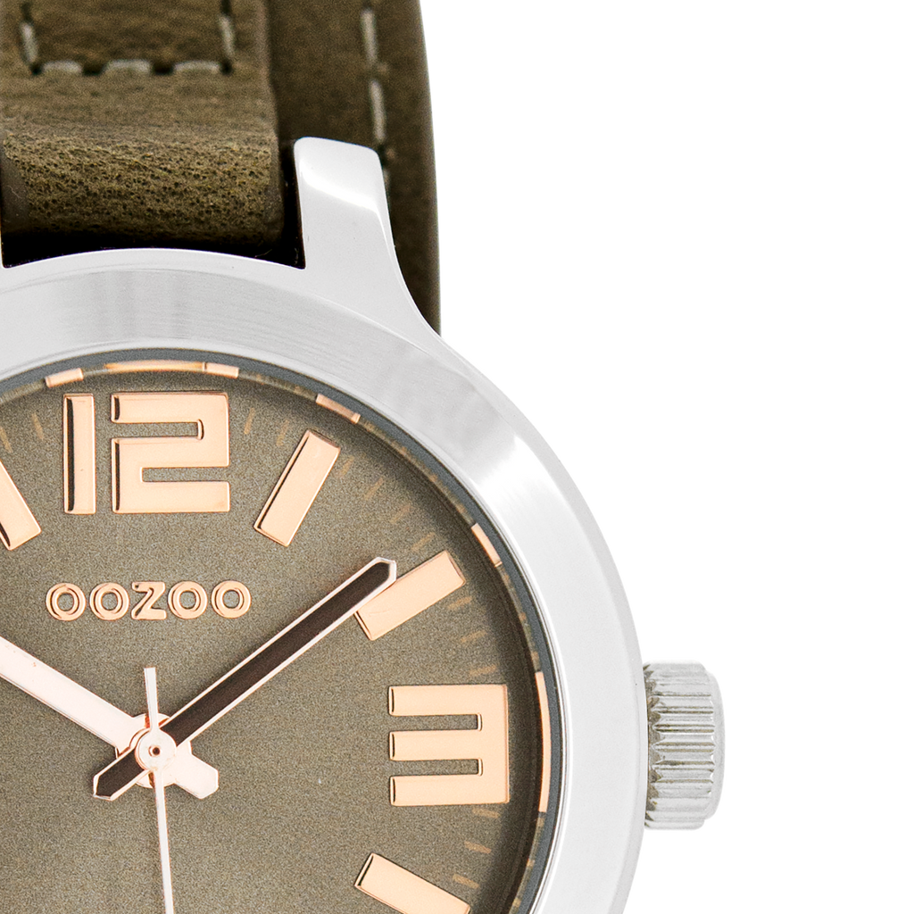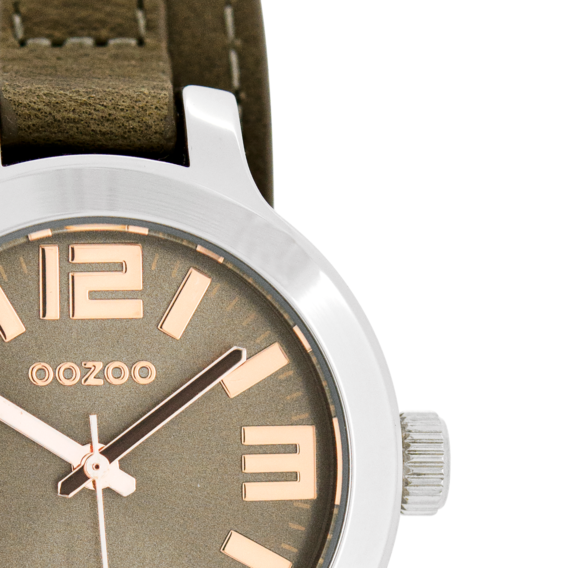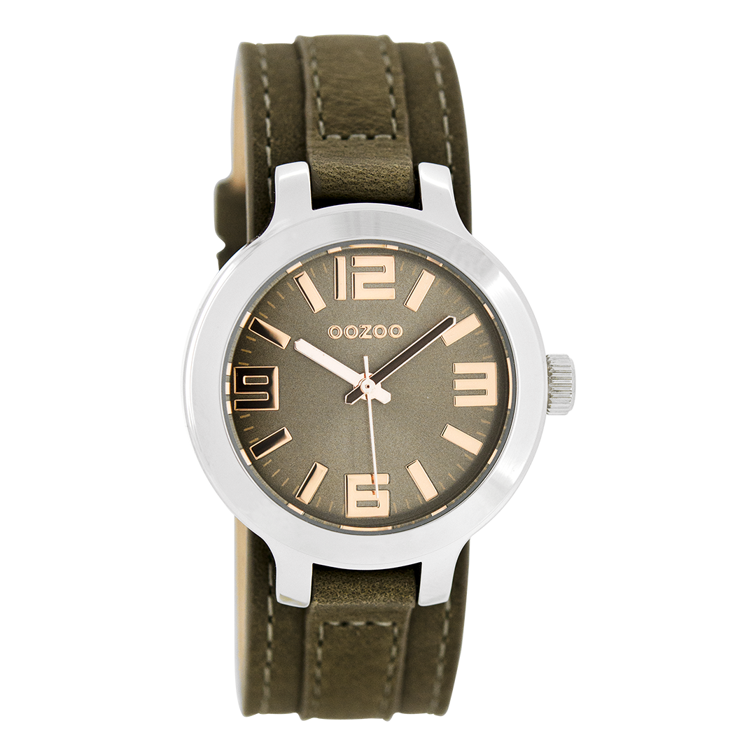 Silver coloured OOZOO watch with dark brown leather strap - C8708