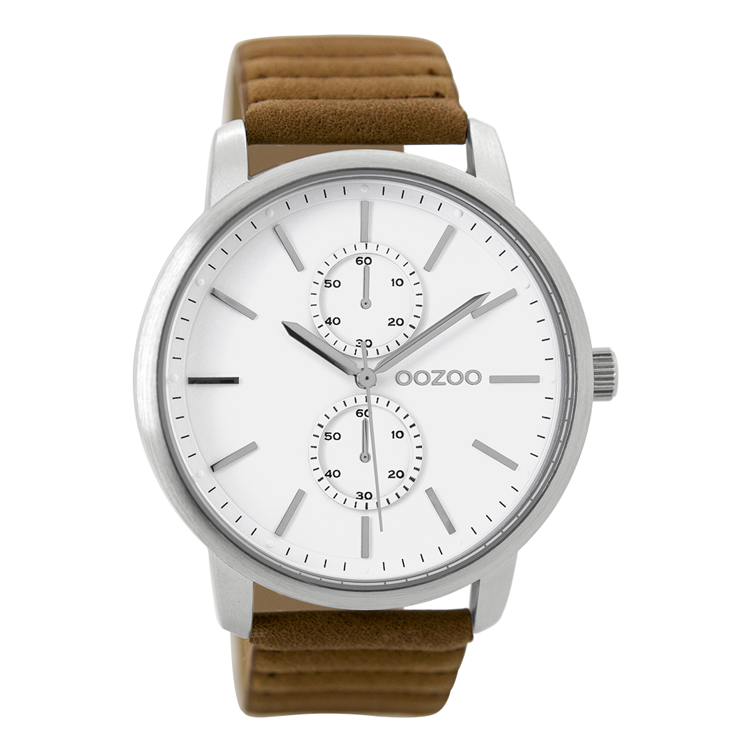 Stand out with this beautiful round unisex design from the trendy OOZOO Timepieces collection. The C9451 has a brown leather strap and 45 mm silver coloured metal watch case. You are making quite the fashion statement with this white chrono dial, silver coloured stripes digits and matching hands. This essential watch for your wardrobe has a mineral glass, stainless steel backplate and is nickel safe. This watch has a 2 Japanese movement and is covered by a 2 year warranty (see section 3 of our Refund, shipping & warranty policy).