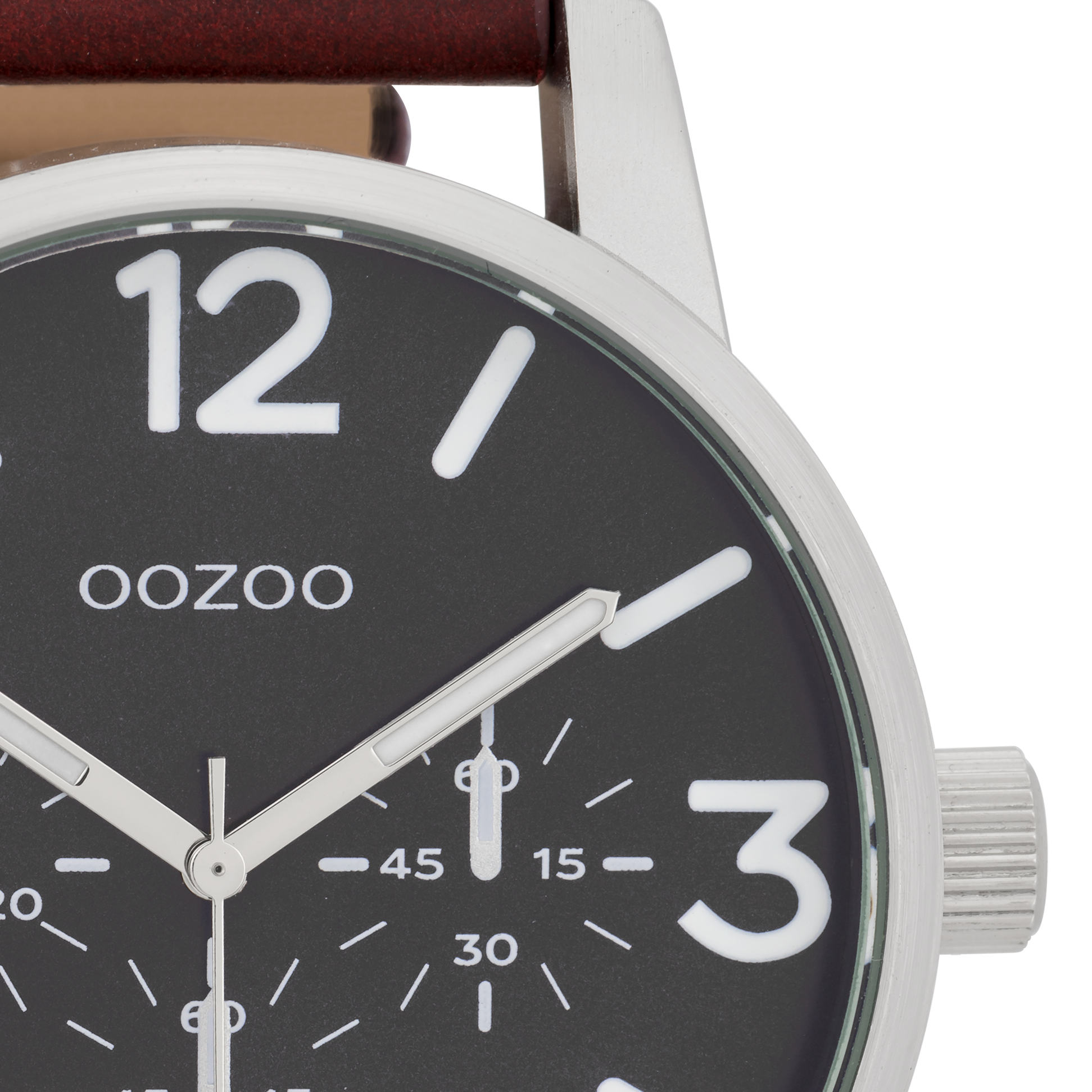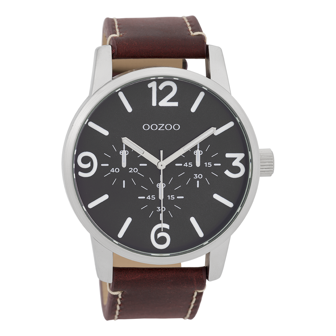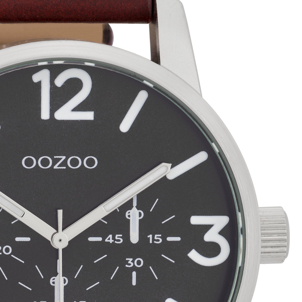 Stand out with this beautiful round gents design from the trendy OOZOO Timepieces collection. The C9652 has a red brown leather strap and 45 mm silver coloured metal watch case. You are making quite the fashion statement with this black chrono dial, silver coloured stripes and numbers digits and matching hands. This essential watch for your wardrobe has a mineral glass, stainless steel backplate and is nickel safe. This watch has a 2 Japanese movement and is covered by a 2 year warranty (see section 3 of our Refund, shipping & warranty policy).