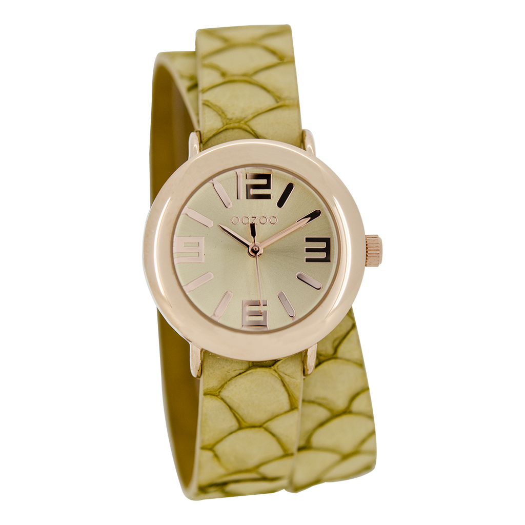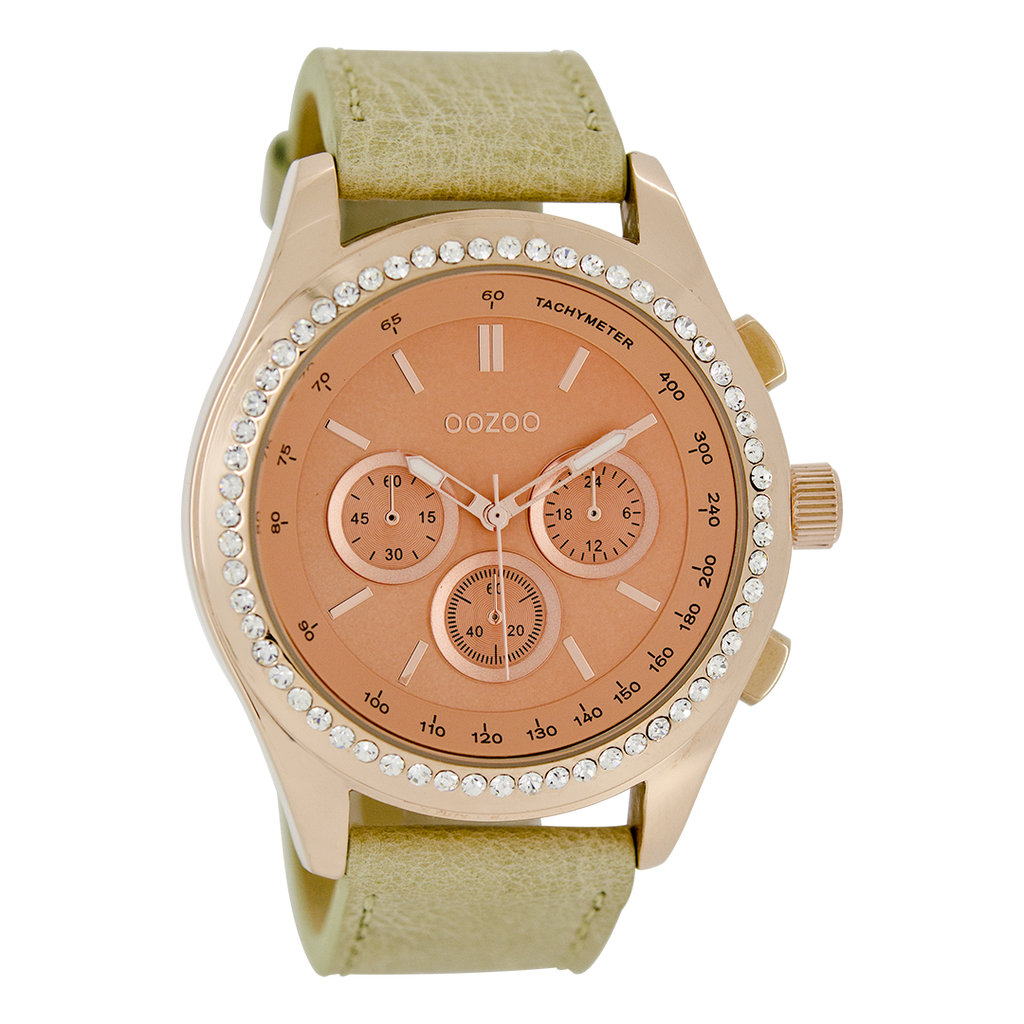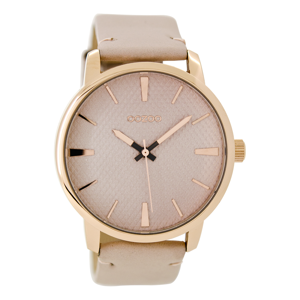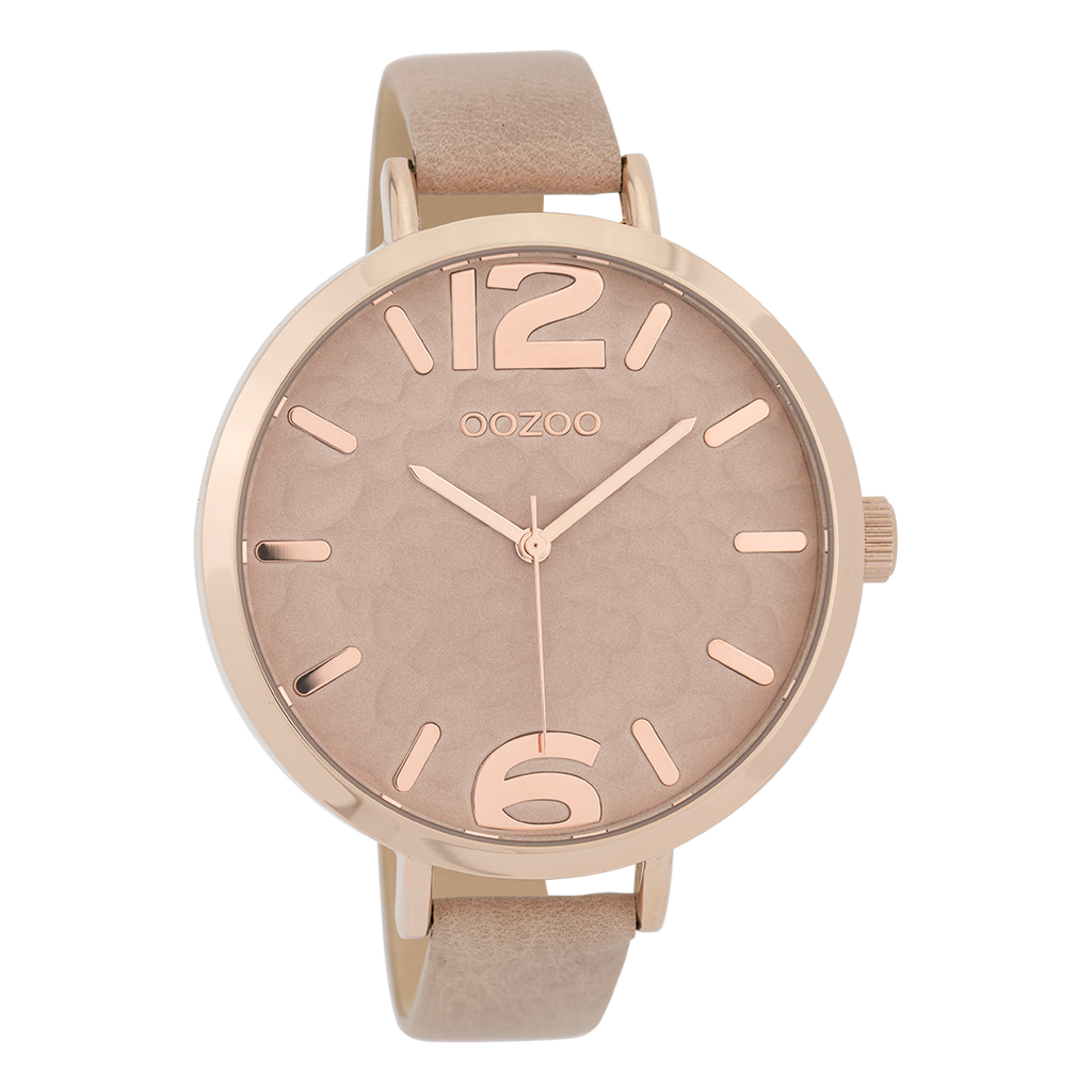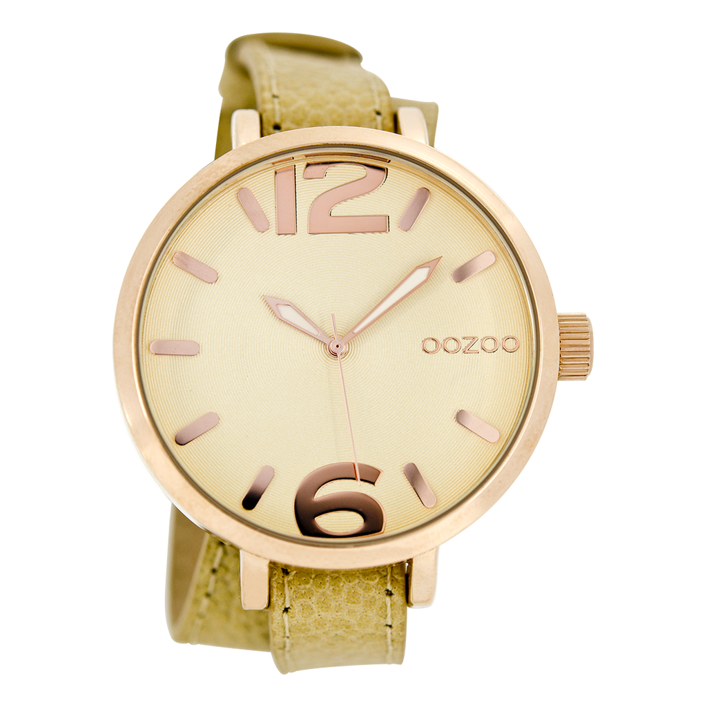 OOZOO Montre en couleur or rose avec bracelet en cuir en sable - C6540