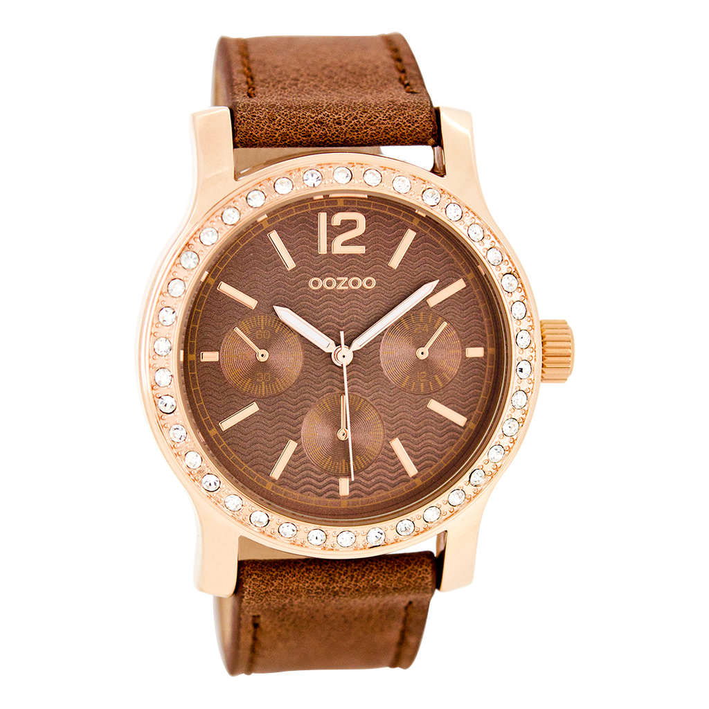 OOZOO Montre en couleur or rose avec bracelet en cuir en sable - C7613