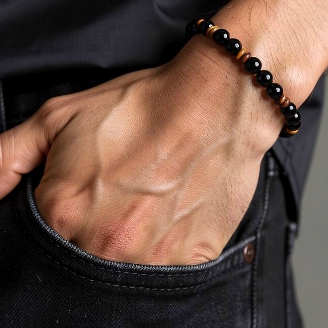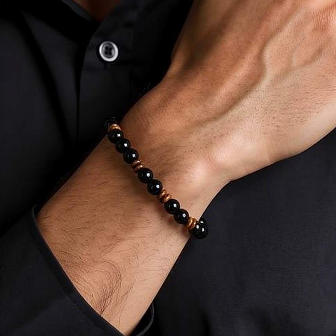Yellow/black tiger eye and onyx bracelet