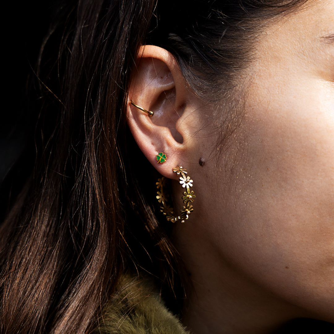 Boucles d'oreilles clous couleur or/vert avec un trèfle vert