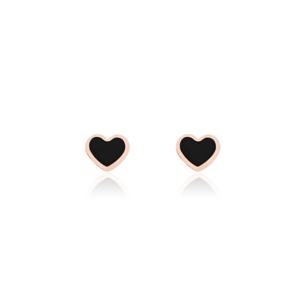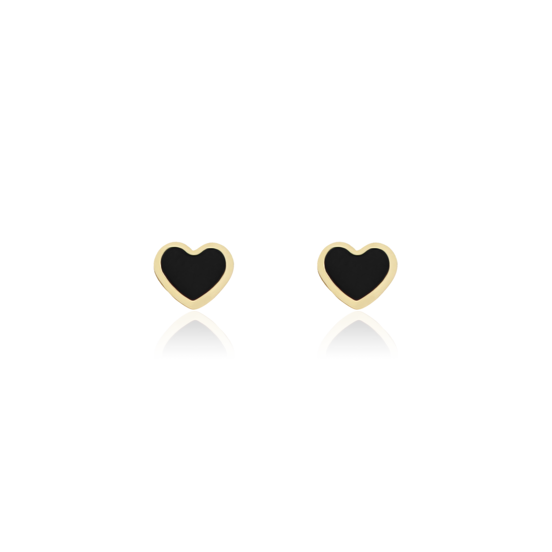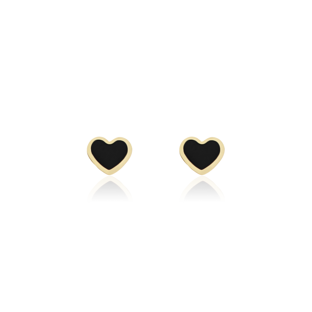 Boucles d'oreilles clous couleur or/noir avec un coeur noir