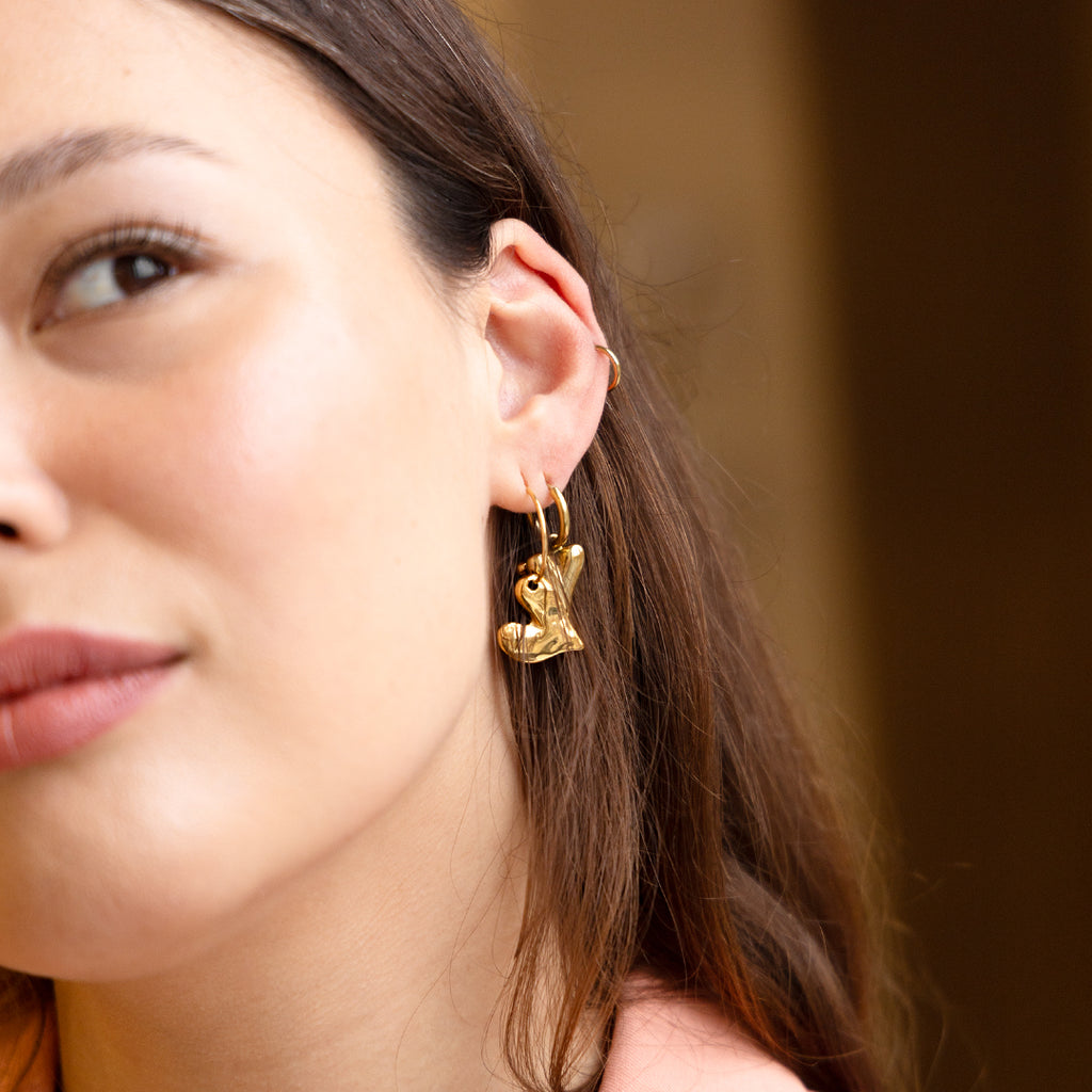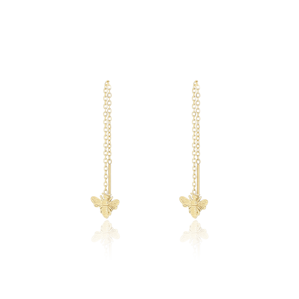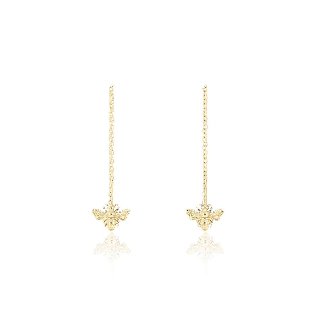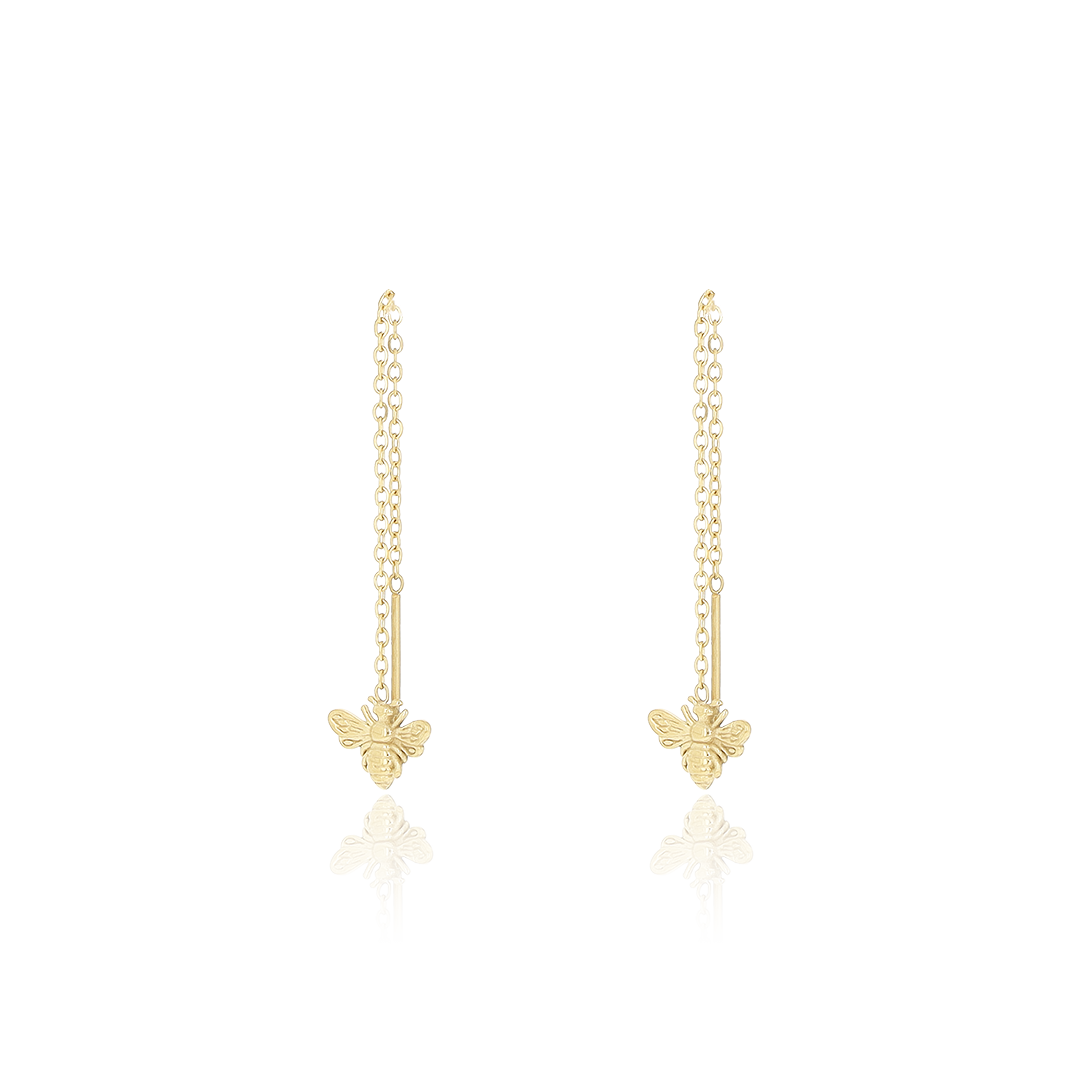 Des boucles d'oreilles en couleur or avec une abeille