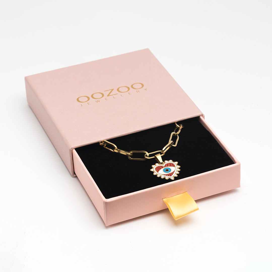 Les bijoux OOZOO sont un excellent ajout à votre collection d'accessoires personnels. Ce magnifique collier couleur or avec du mauvais oeil est l'accessoire parfait pour compléter votre tenue. Le bracelet mesure 44cm de long et est réglable sur 8cm. Cette pièce étonnante est fabriquée en acier inoxydable solide avec du PVD plaqué en couleur or et donc durable. Ce matériau vous assure que vos bijoux conservent leur belle couleur. Ce produit (SN-2019) est couvert par une garantie de 3 mois (voir la section 3 de notre politique de remboursement, d'expédition et de garantie).