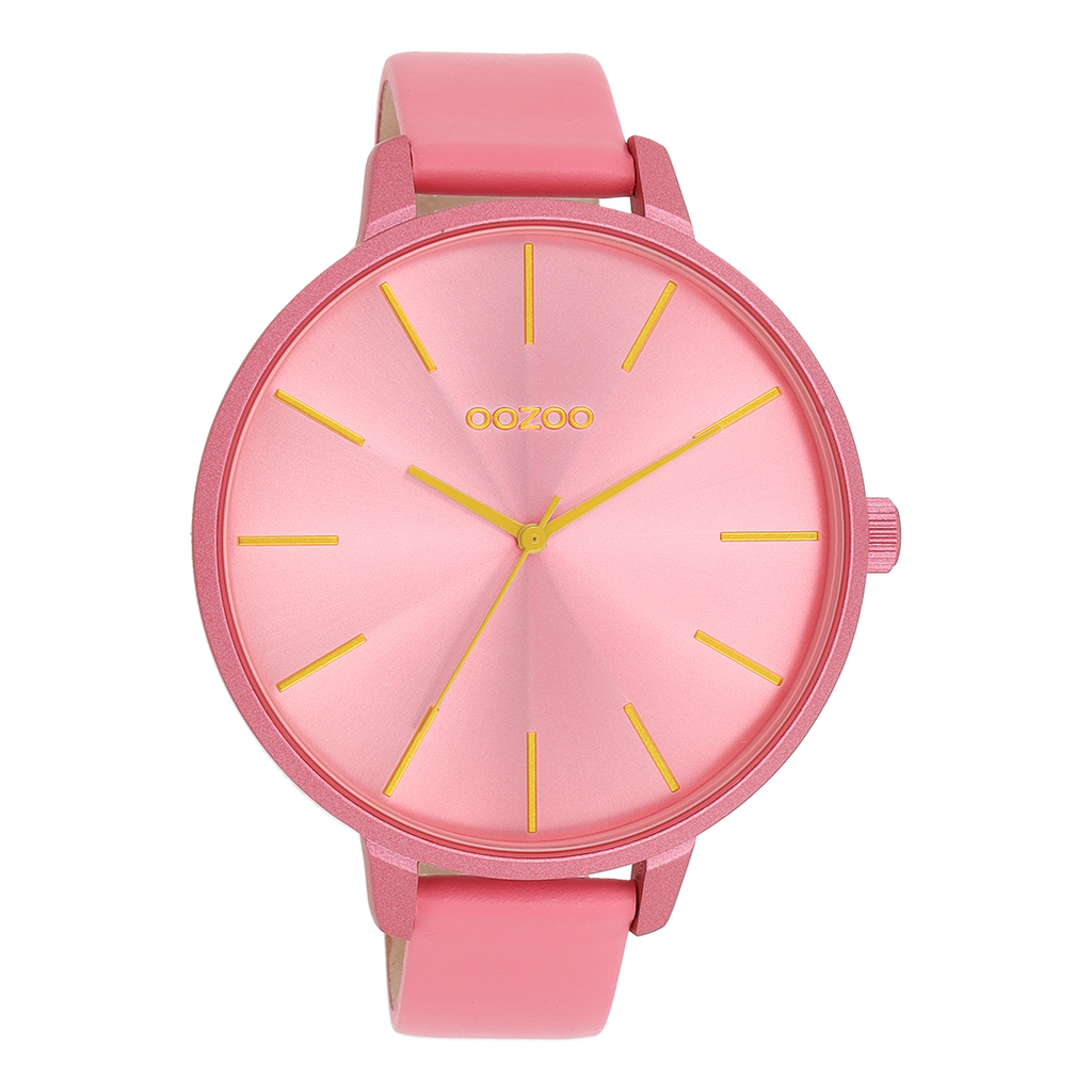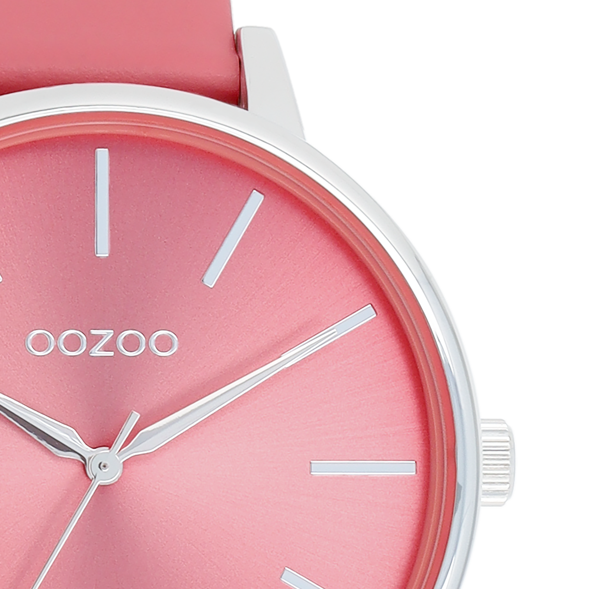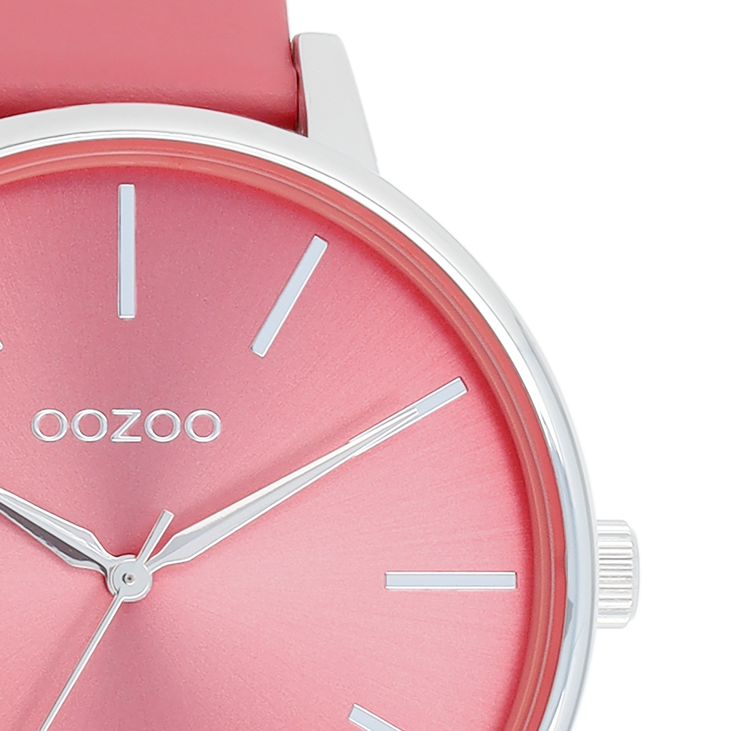 OOZOO Montre en couleur argent avec bracelet en cuir en couleur coquillage rose - C11295
