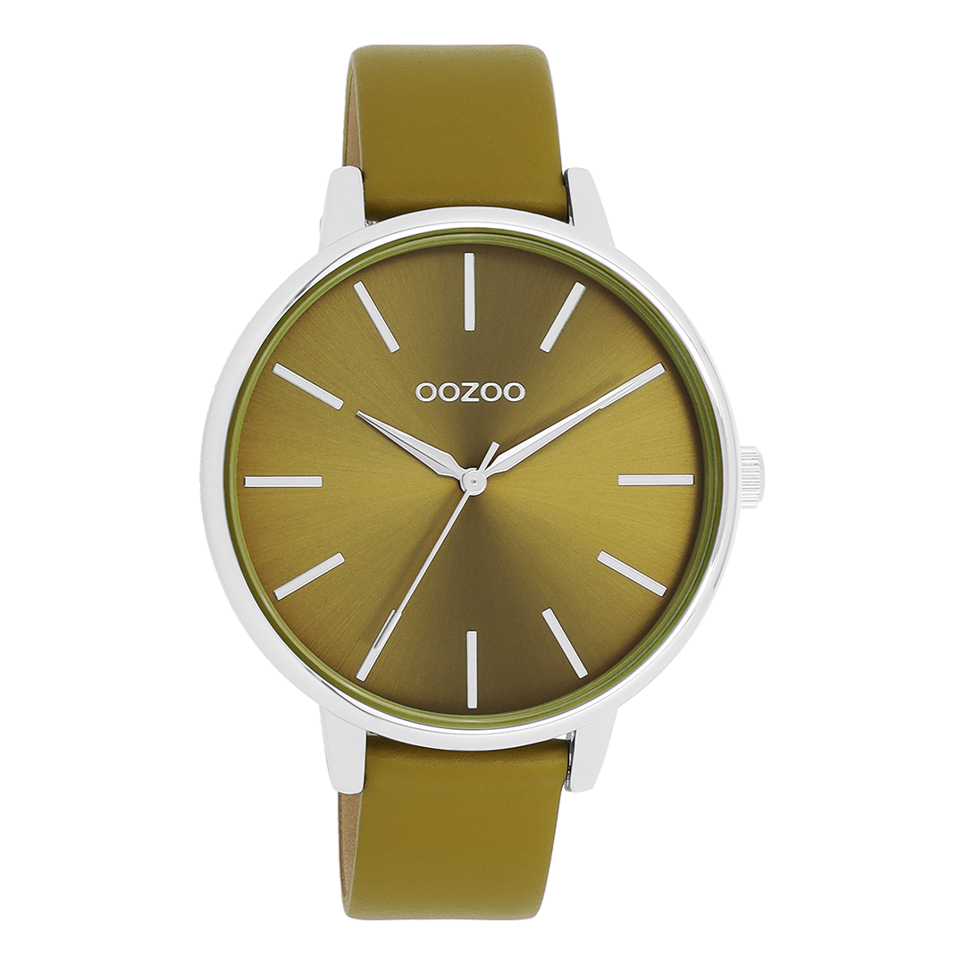 OOZOO Montre en couleur argent avec bracelet en cuir en vert olive - C11298
