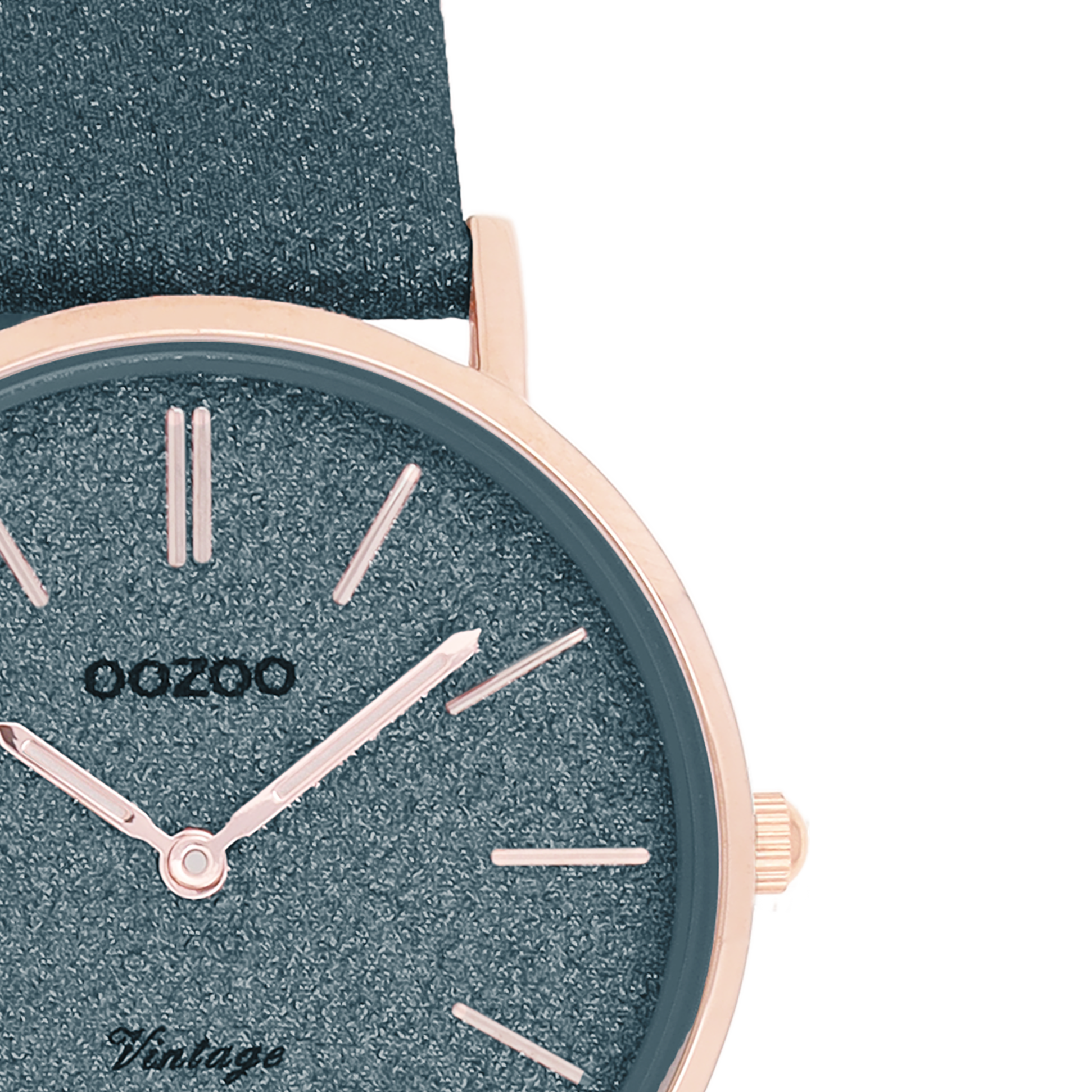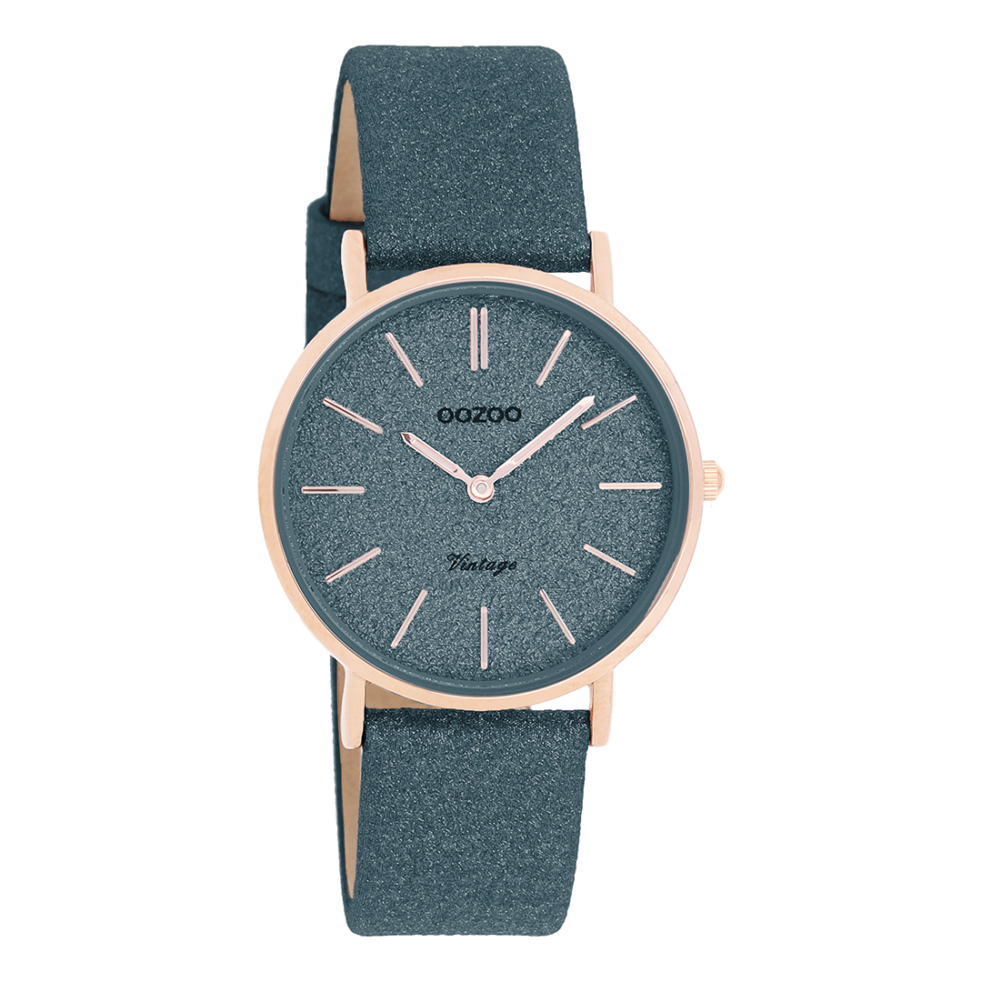 OOZOO Montre en couleur or rose avec bracelet en cuir en bleu foncé - C20203