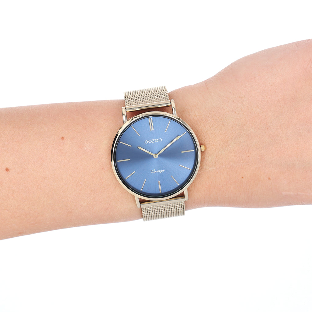 OOZOO Montre en couleur or avec bracelet en mesh en couleur or - C20290