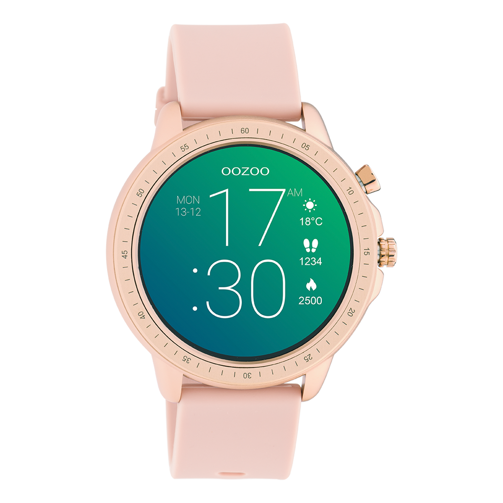 OOZOO Montre connectée en couleur or avec bracelet en caoutchouc en rouge tendre - Q00131