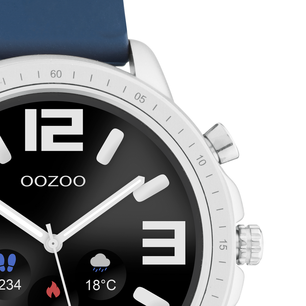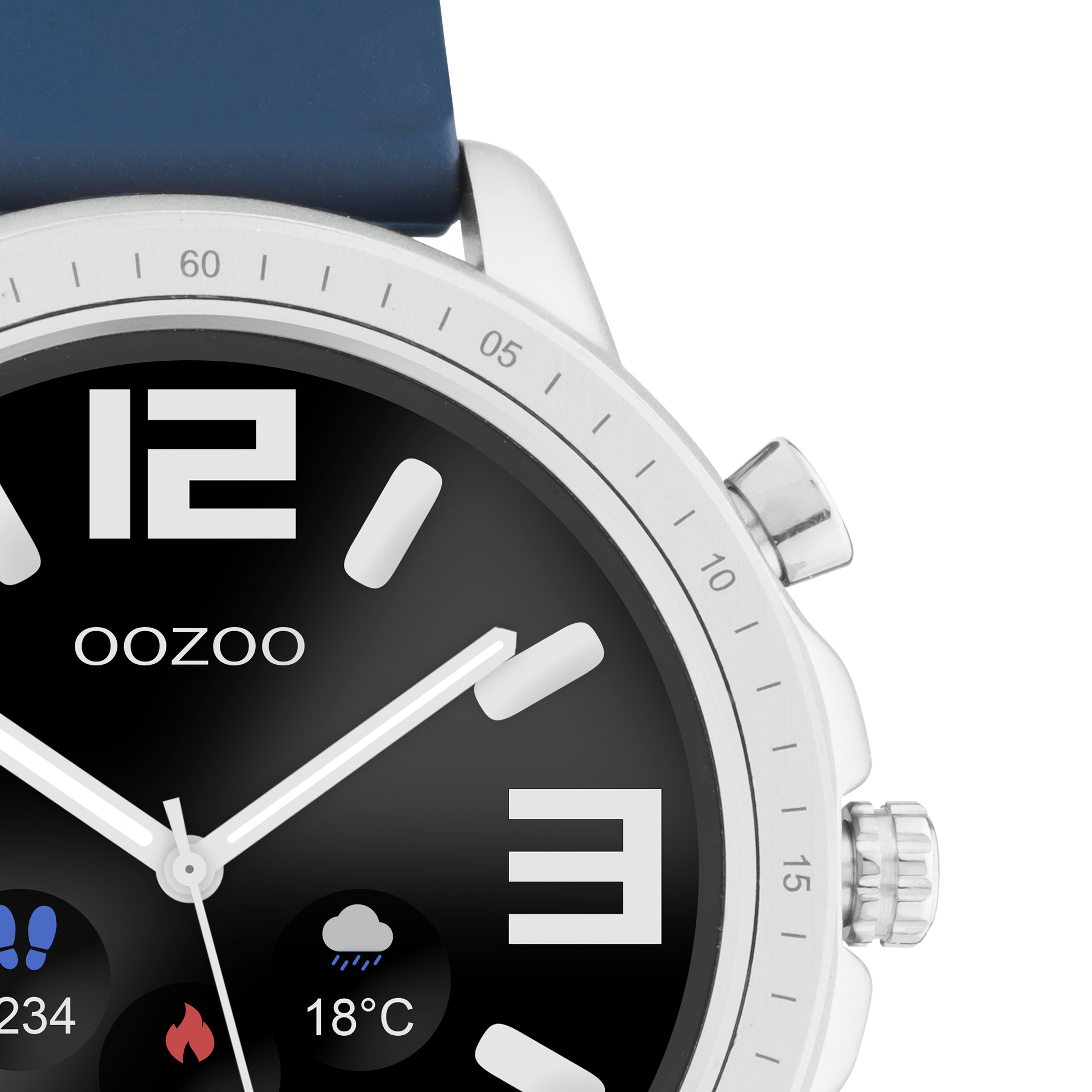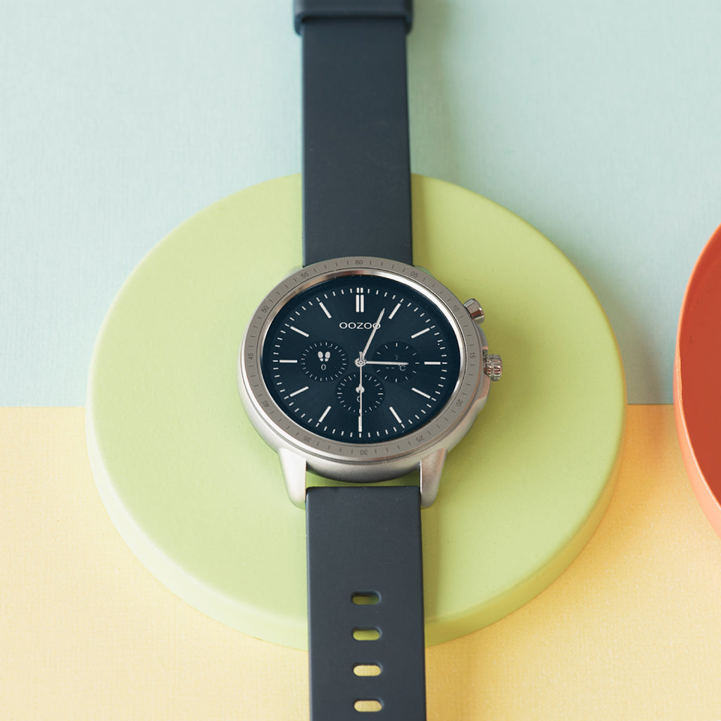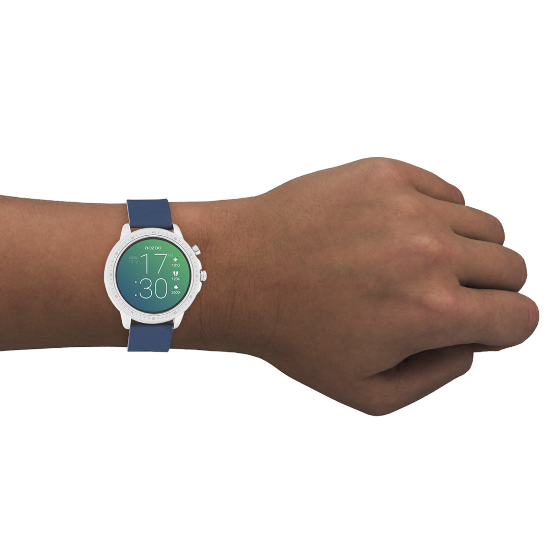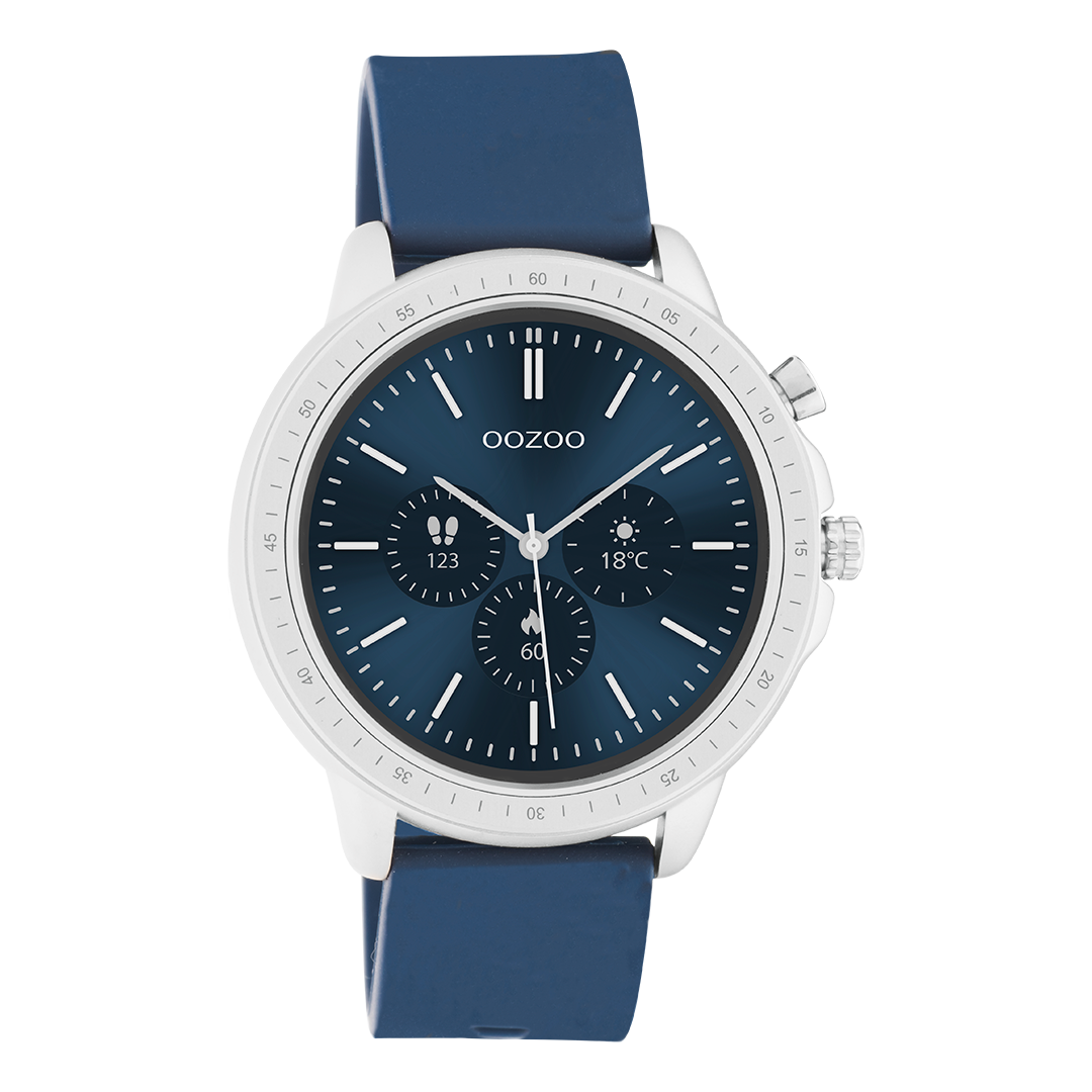 OOZOO Montre connectée en argent avec bracelet en caoutchouc en bleu foncé - Q00315