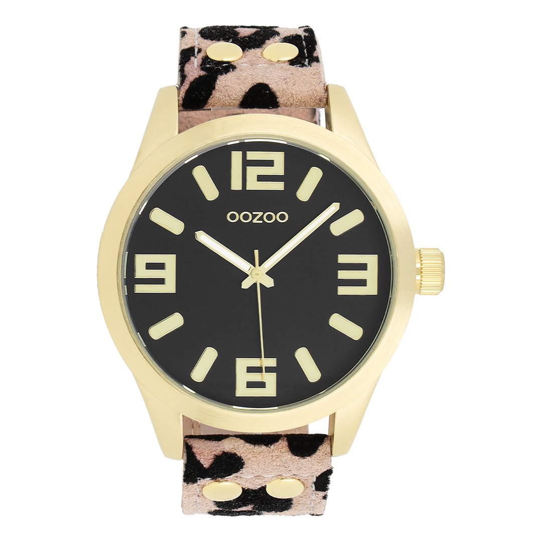 OOZOO Montre en couleur or avec bracelet en cuir en marron - C1098