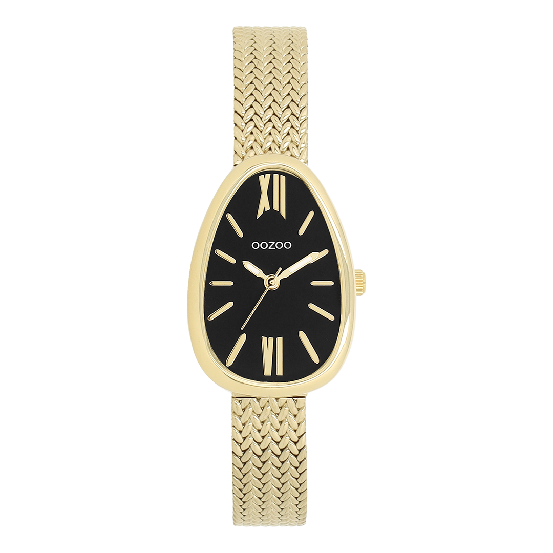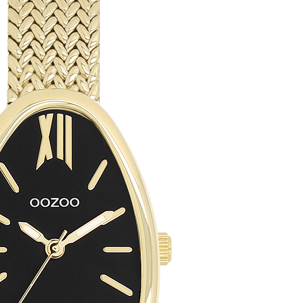 Stand out with this beautiful egg-shape ladies design from the trendy OOZOO Timepieces collection. The C11643 has a gold coloured metal v-mesh bracelet and 31x22 mm gold coloured metal watch case. You are making quite the fashion statement with this black dial, gold coloured stripes and Roman numerals digits and matching hands. This essential watch for your wardrobe has a mineral glass, stainless steel backplate and is nickel safe. This watch has a 2ATM Japanese movement and is covered by a 2 year warranty (see section 3 of our Refund, shipping & warranty policy).