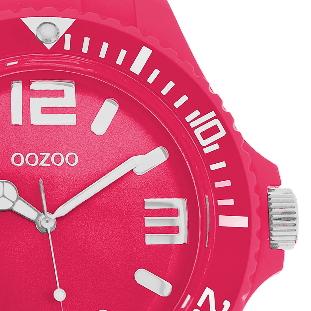 OOZOO Montre en rose fluo avec bracelet en caoutchouc en rose fluo - C4334