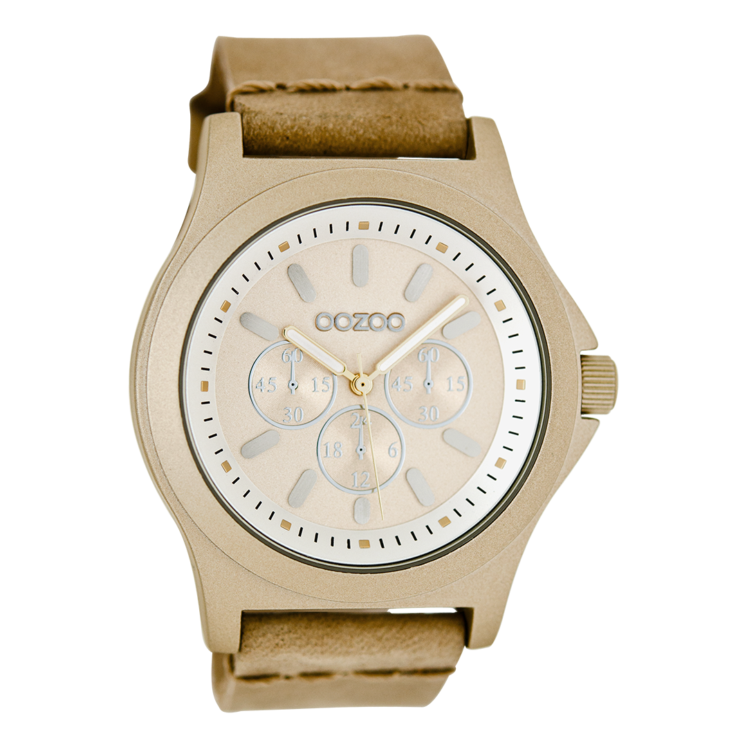 OOZOO Montre en couleur or avec bracelet en cuir en sable - C6510