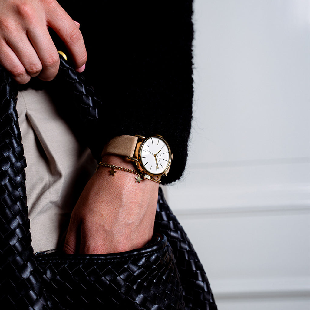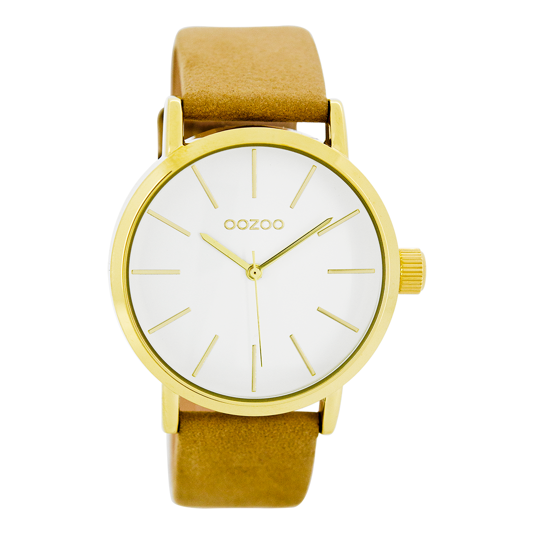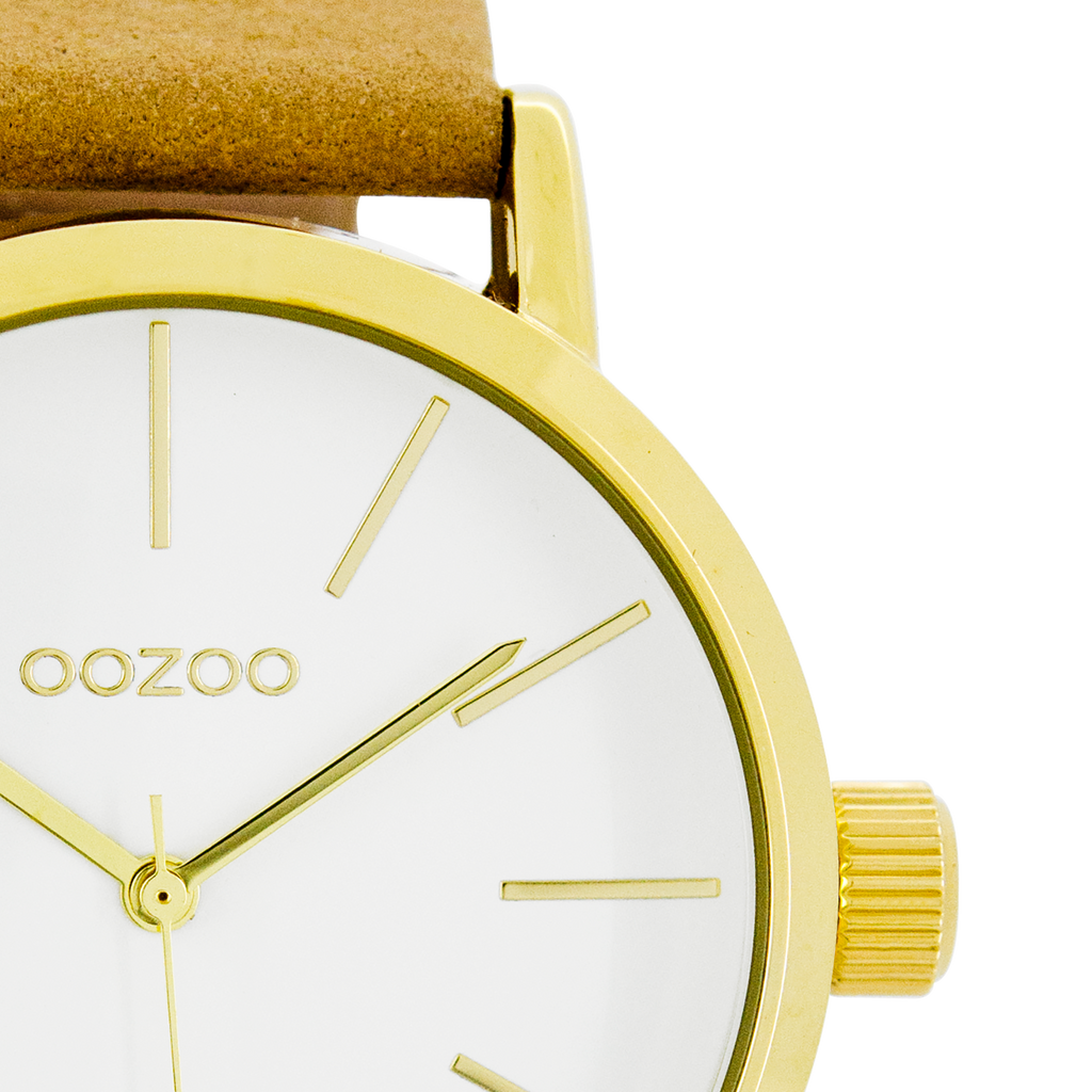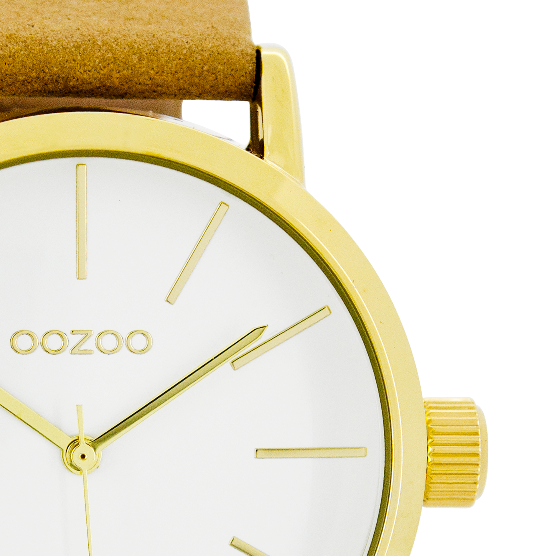 OOZOO Montre en couleur or avec bracelet en cuir en camel - C7679