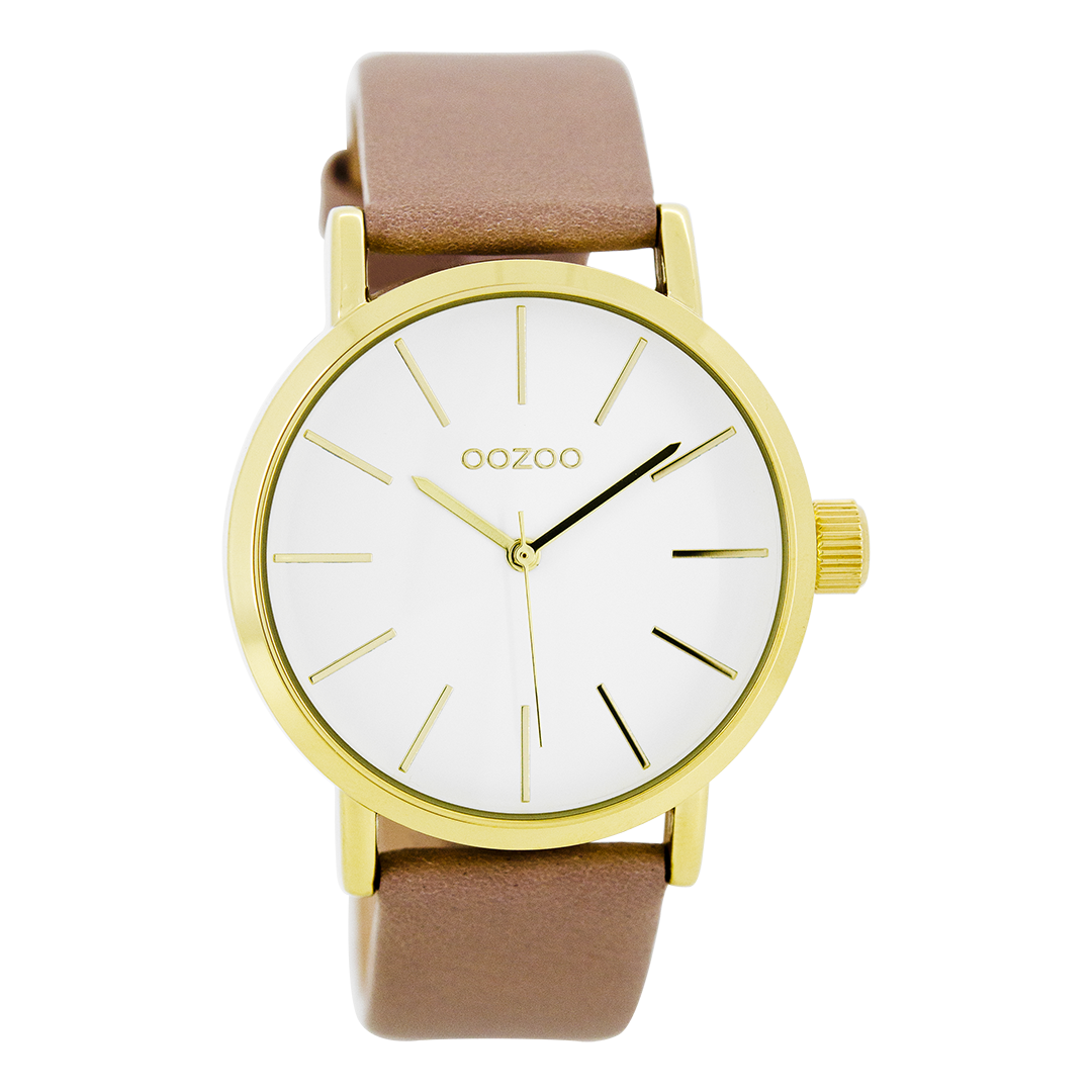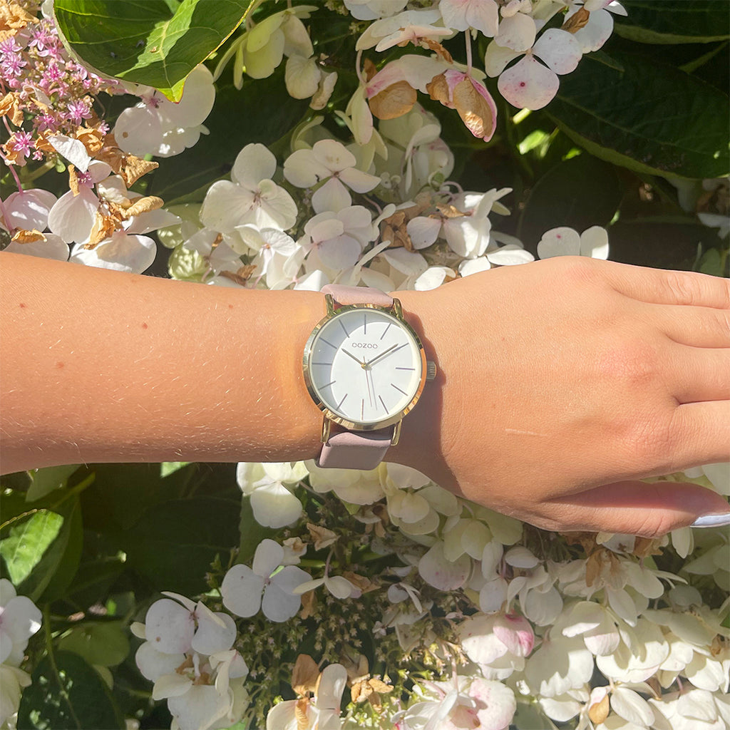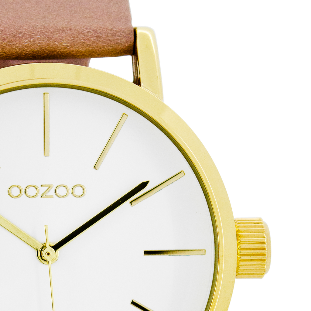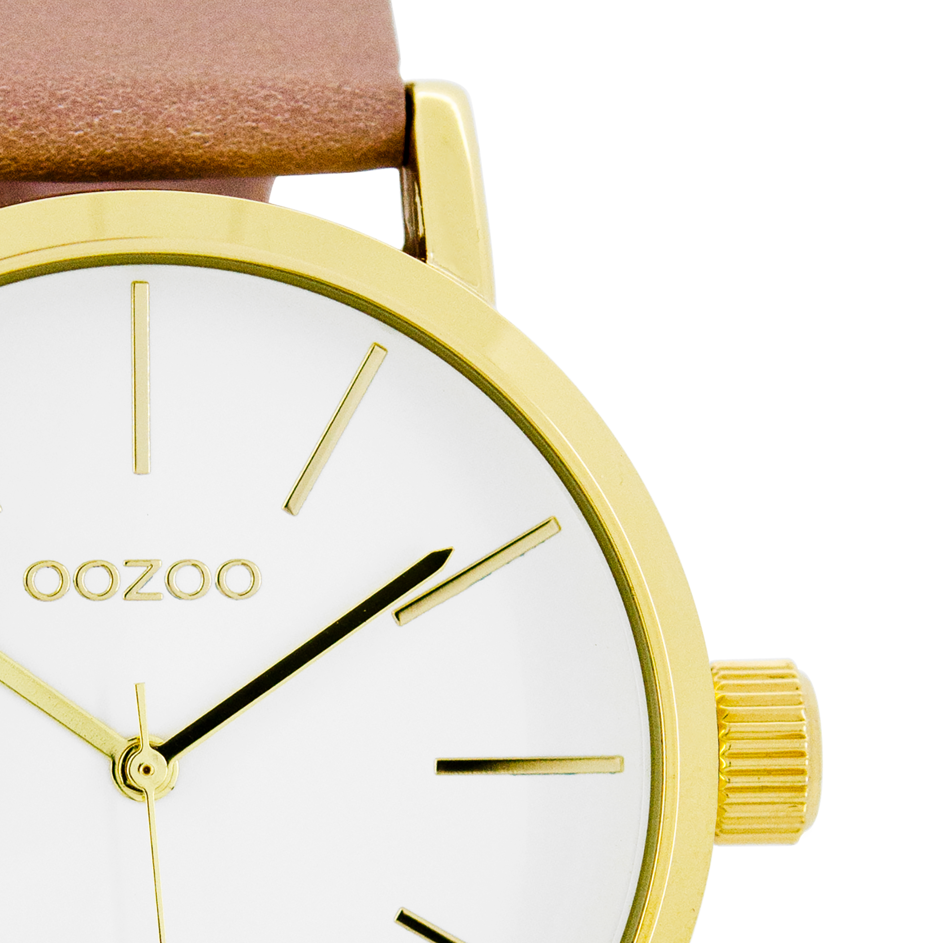 OOZOO Montre en couleur or avec bracelet en cuir en rose gris - C7680